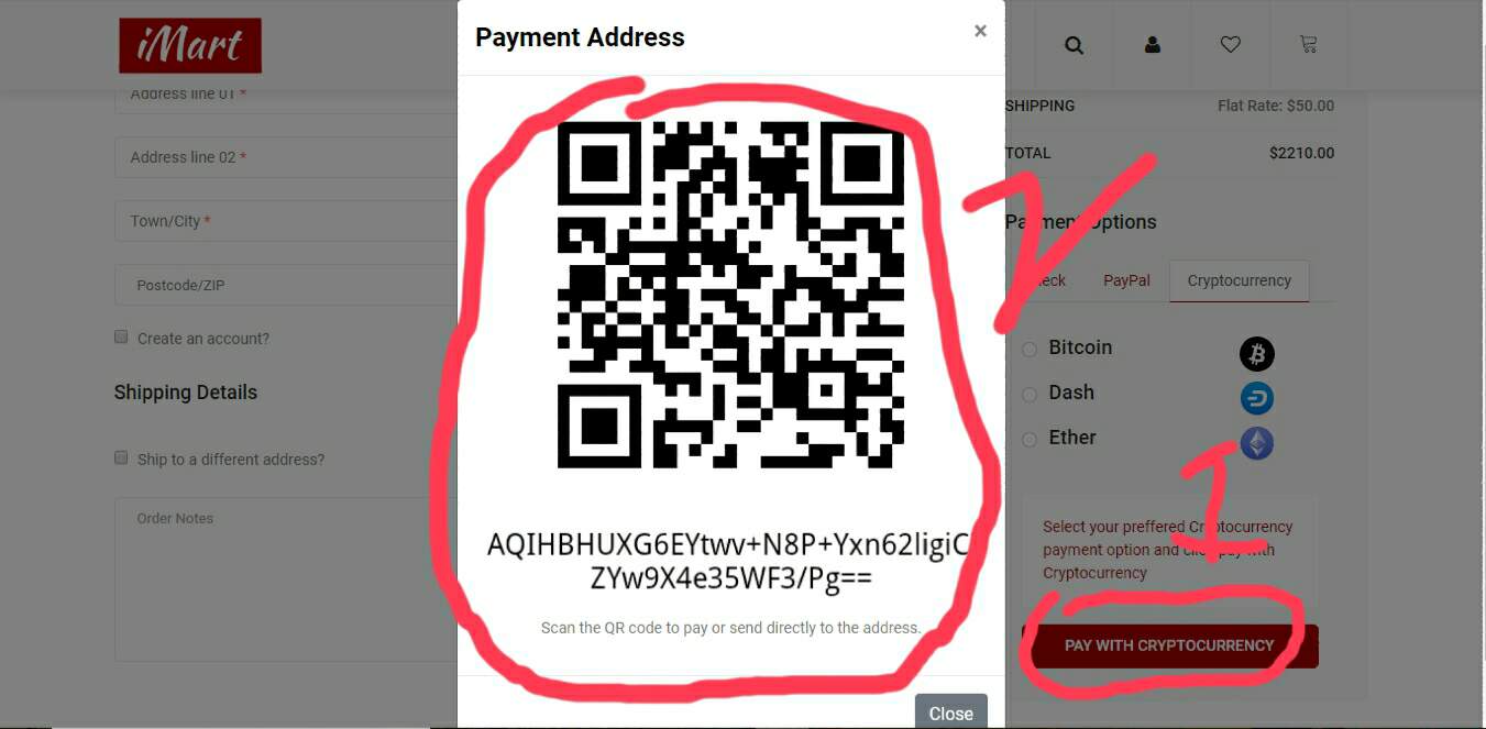 I suceeded in adding the design for a cryptocurrency payment option. The aim is for the user to just click "pay with cryptocurrency", an address is generated he scans and pays. Check it out
