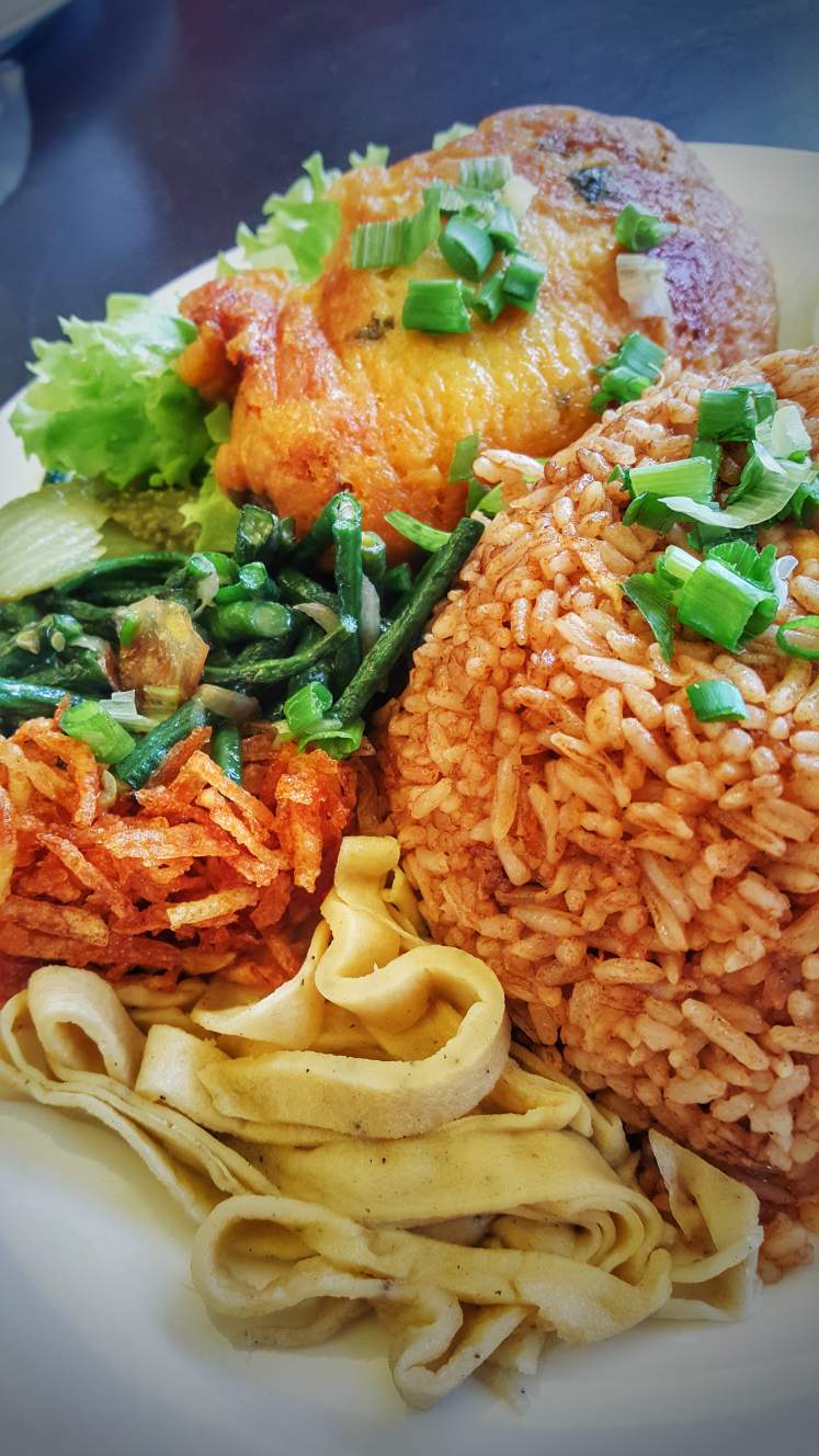 As an extra, a photo of a delicious dish (actually 2 dishes, nasi and pom) I had for lunch yesterday.