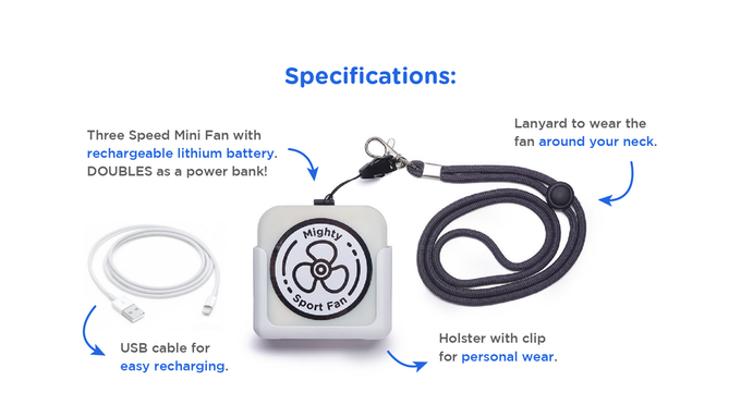 Mighty Sport Fan & Power Bank - Cutting edge mini fan blows cool breeze under your clothing