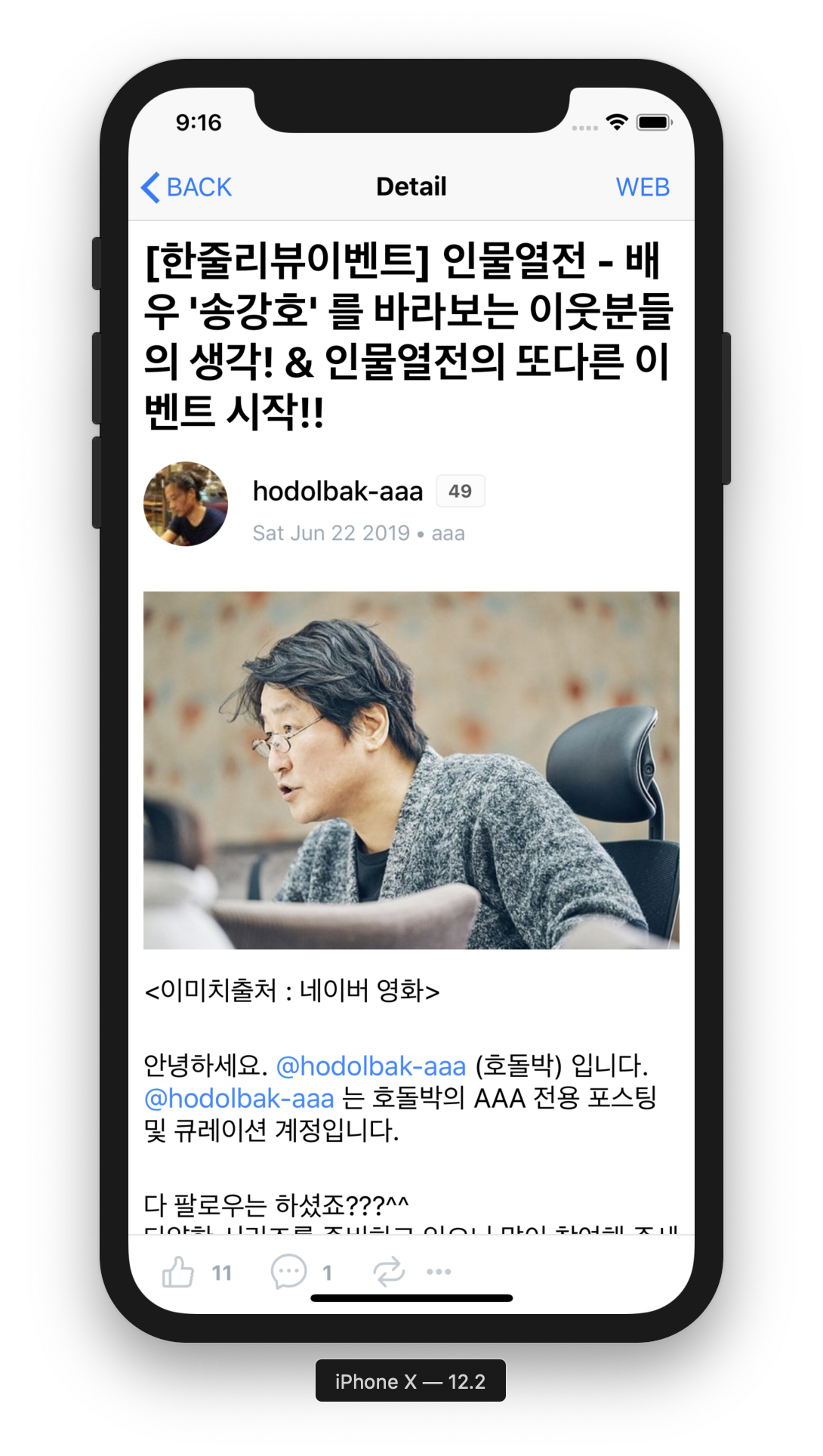 이번에는 포스팅 본문 내용을 보여주는 상세 화면을 구현합니다. body에 포함된 마크다운/HTML을 파싱하여 렌더링된 결과물을 네이티브 화면으로 출력합니다.