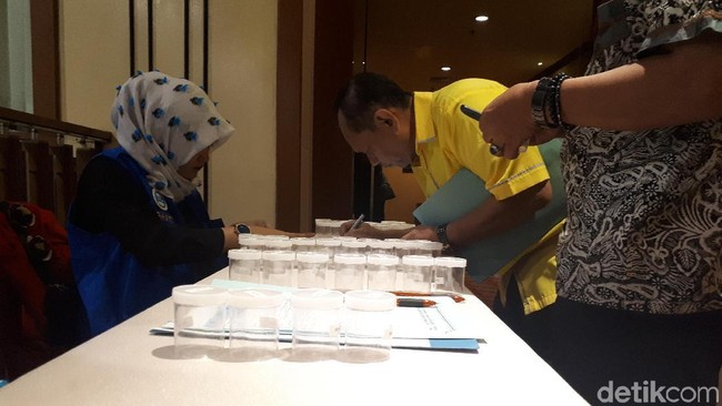 Pemantau AFP, ing 09:32 pm, para fungsionaris sing njupuk tes urine berjumlah 50 wong, adhedhasar lembaran registrasi peserta ing meja perwira BNN. Anggota iki kalebu anggota DPD, DPP, AMPG, Kosgoro, Organisasi Pusat AMPI Karyawan Wiraswastika Indonesia (SOKSI).