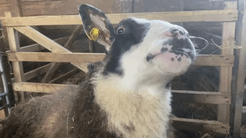 Rasch wurde es immer lauter und unruhiger in der Herde, die mittlerweile auf über hundert Tiere angewachsen ist. Eher grunzende Laute, wie sie ein Schaf in den Wehen von sich gibt (GIF: ein Schaf mit Wehenschmerzen beschwichtigt), nahm ich nicht wahr. Nein, die Damen meinten halt allesamt, es sei Zeit fürs Frühstück. Und so begab ich mich umgehend in die Futterkammer.
