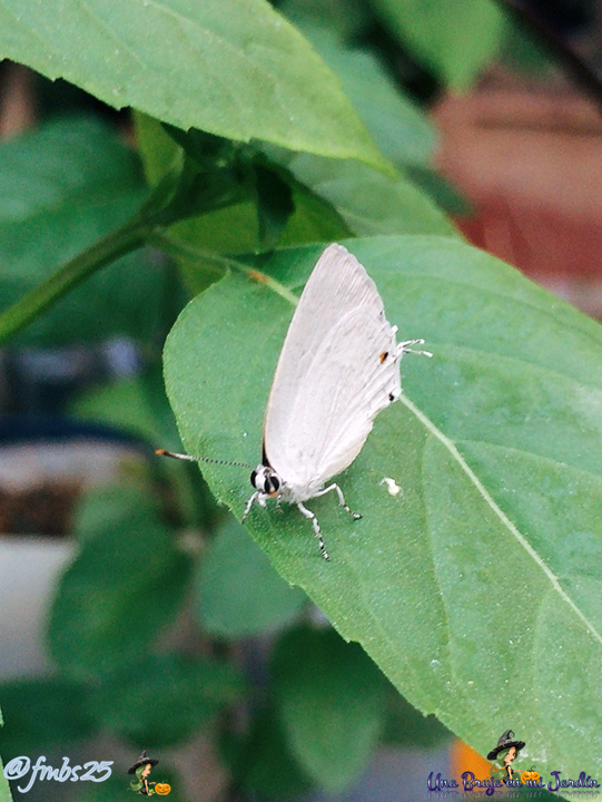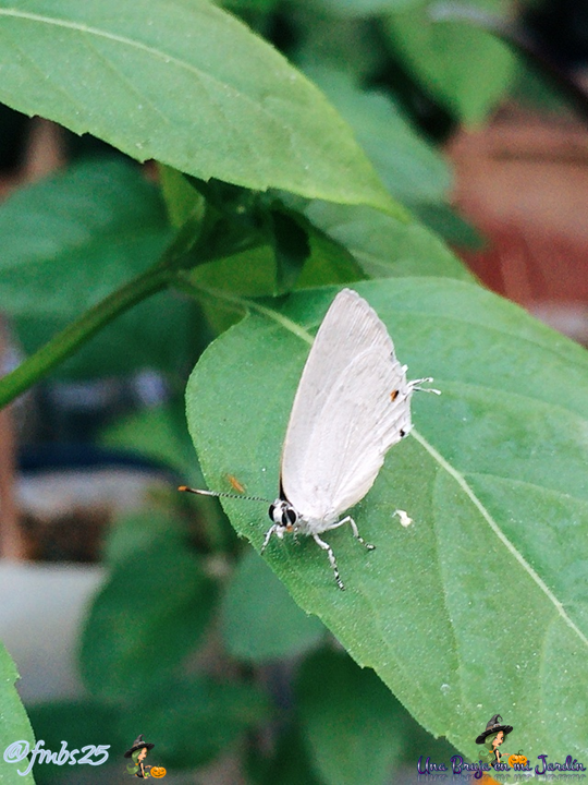 esta diminuta amiguita la encontré ayer en la tarde sobre una plantita de albahaca, me llamo la atención lo apacible que se encontraba y lo pequeño de su tamaño, debía medir un poco más de un centímetro, lamentablemente no logre capturar una vista de sus alas abiertas. Esta pequeña es un espécimen de Ostrinotes Halciones, y por la información que logre encontrar parece ser un macho, ya que estos tienden a tener sus alas de color marrón o azul por la parte superior, a diferencia de las hembras que cuentan con un delicado azul claro, sin embargo tanto hembras como machos tienen las alas en su parte inferior (que es la cara que nos muestra esta pequeña) de un color gris claro o marrón pálido.