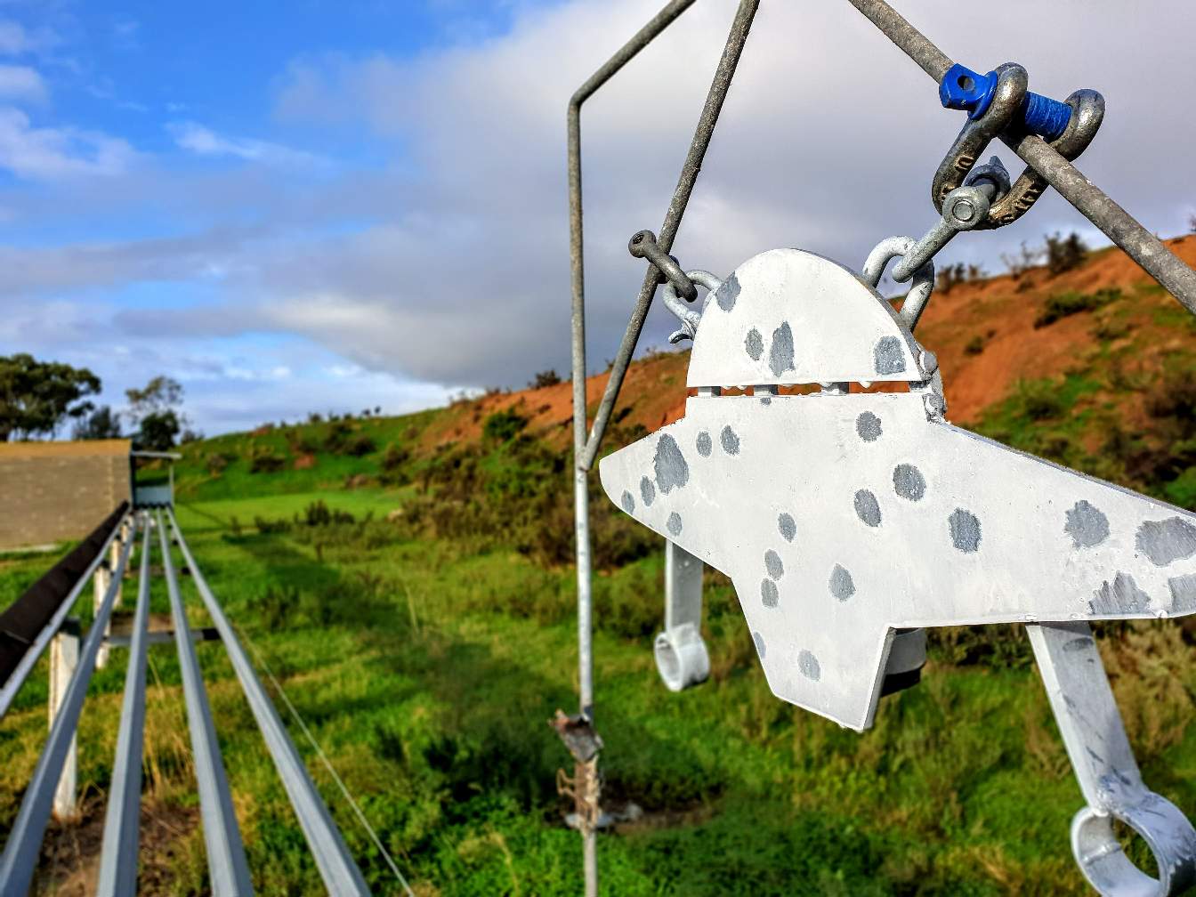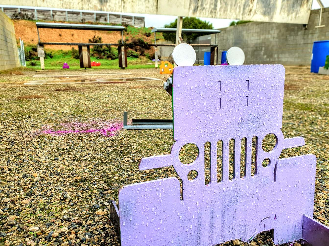 Some novelty targets. The target is the white dots above the Jeep. They are about the size of a small watch face.