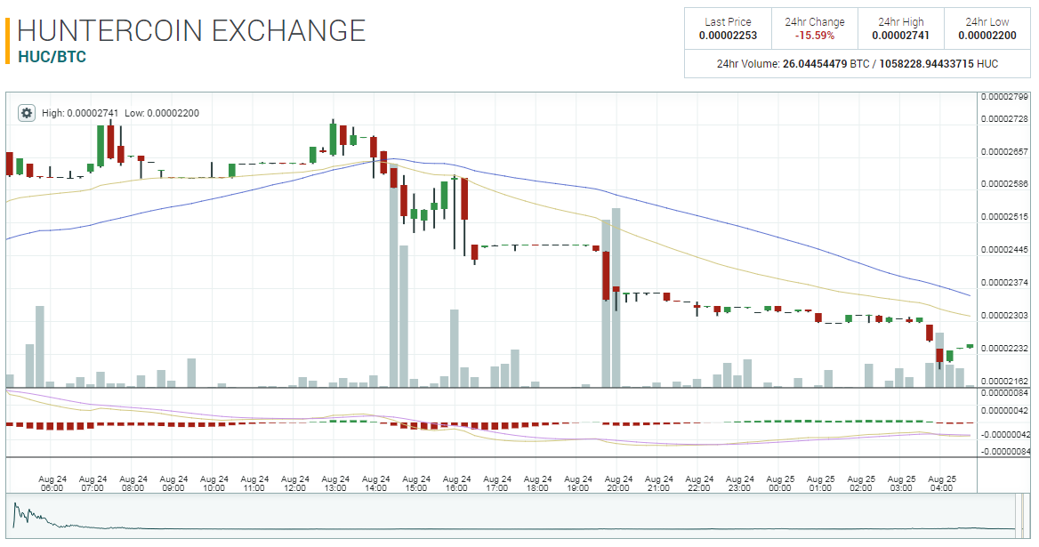 2. Huntercoin - Decreased by 16%