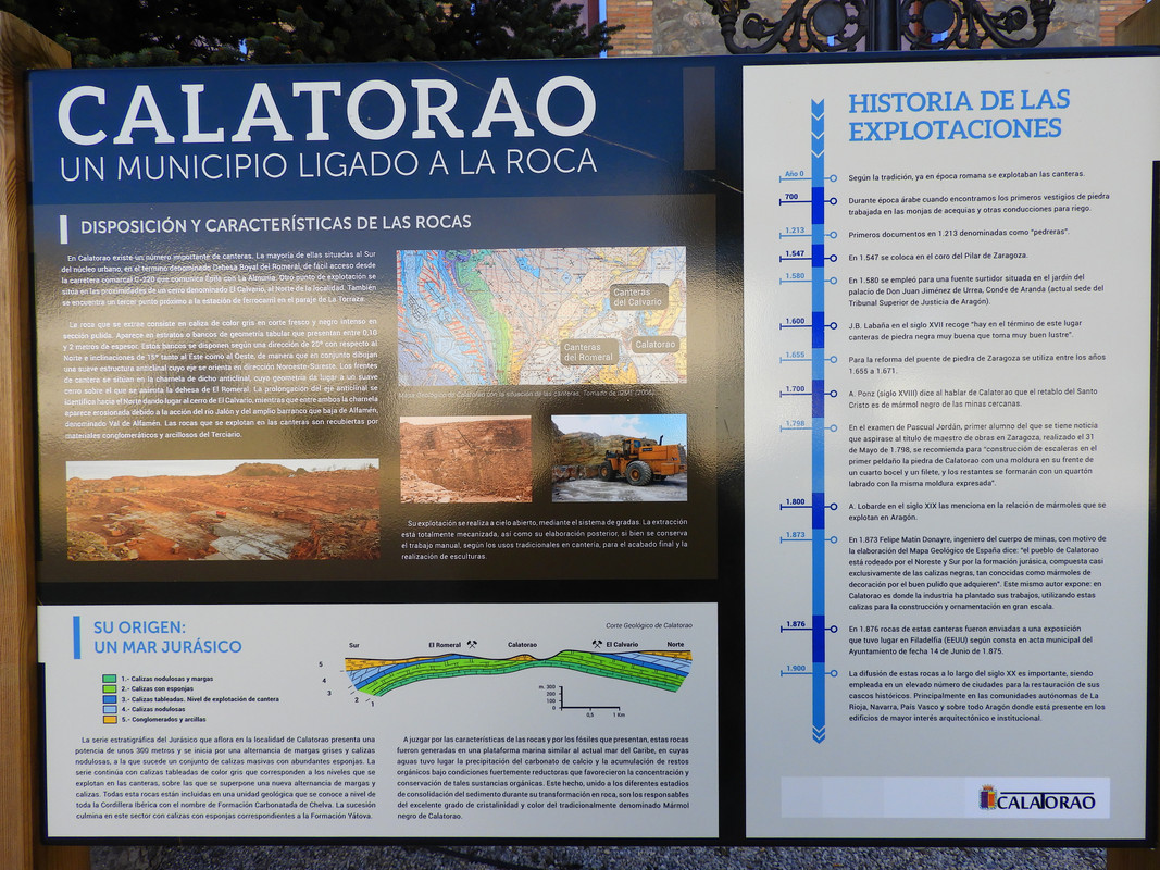 La «piedra de Calatorao». De color negro, es extraída de las canteras de la Dehesa Boyal del Romeral. Se trata de formaciones del Jurásico constituidas casi exclusivamente por calizas negras que, gracias al buen pulido que adquieren, son muy apreciados como mármol de decoración. Las primeras obras conocidas se remontan a la época árabe pero fue utilizada ya desde la época romana. Decora gran número de palacios e iglesias aragonesas y en la actualidad es utilizada para esculturas, arquitectura moderna y en general en todo tipo de espacios y zonas urbanas de España.
