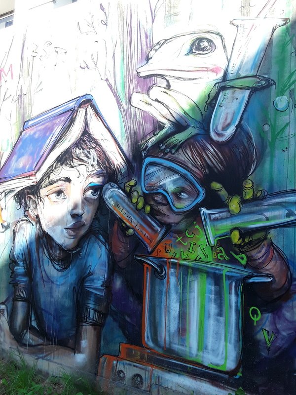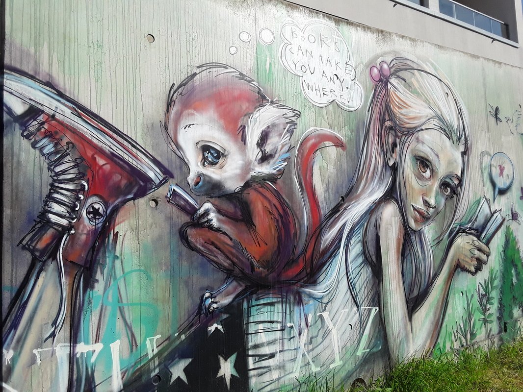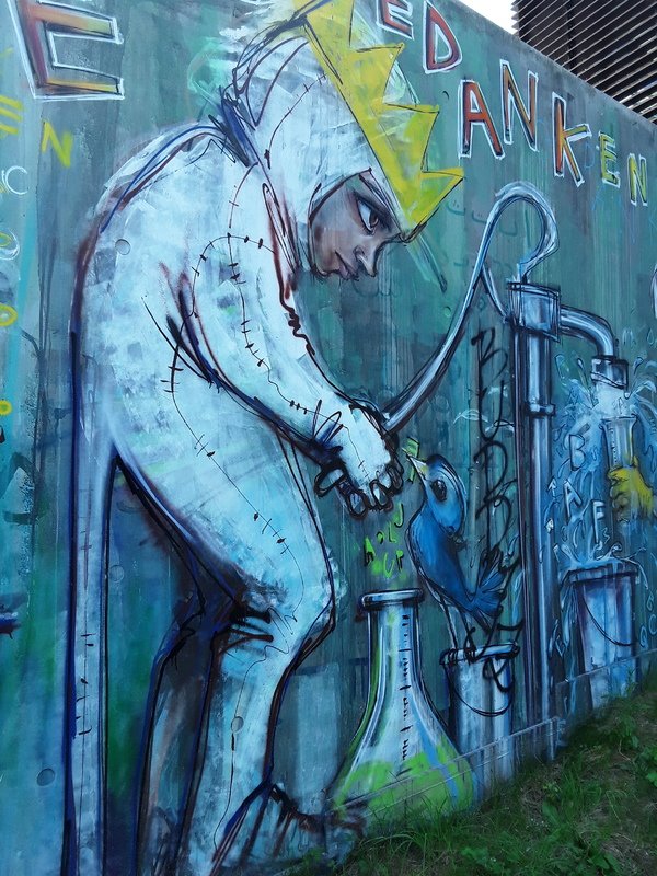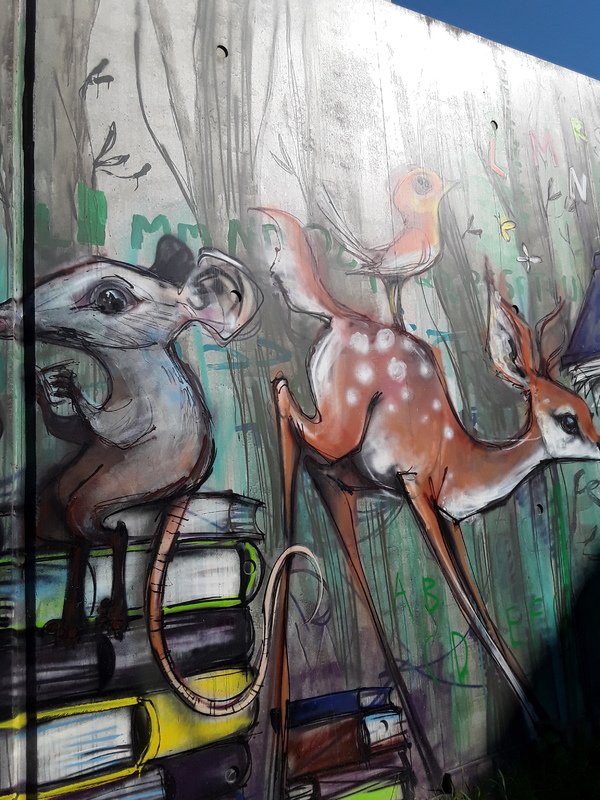 Als ich vor 2 Tagen einen Spaziergang machte im angrenzenden Bad Vilbel ca.15 Minuten von Frankfurt machte ich eine tolle Entdeckung.Eine ganze Mauer entlang ein richtiges Kunstwerk voll mit verschiedenen Graffiti Bildern.Ich war sehr begeistert denn hier waren tolle Künstler am Werk.Aber schaut selbst wie toll.