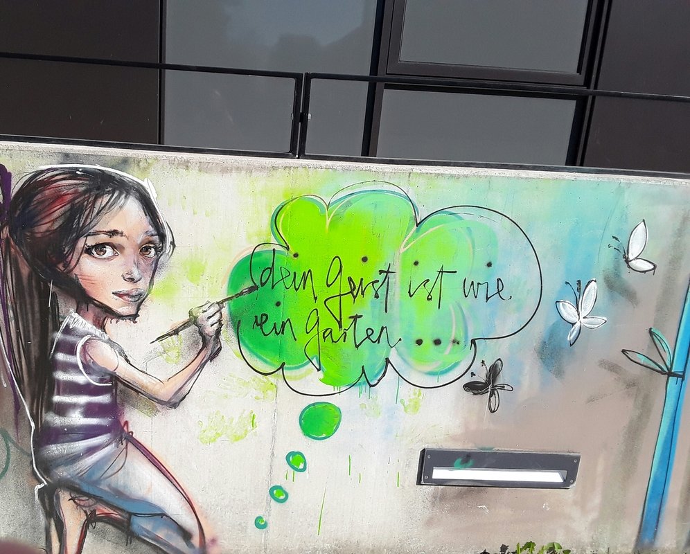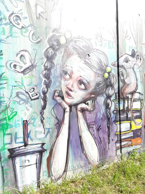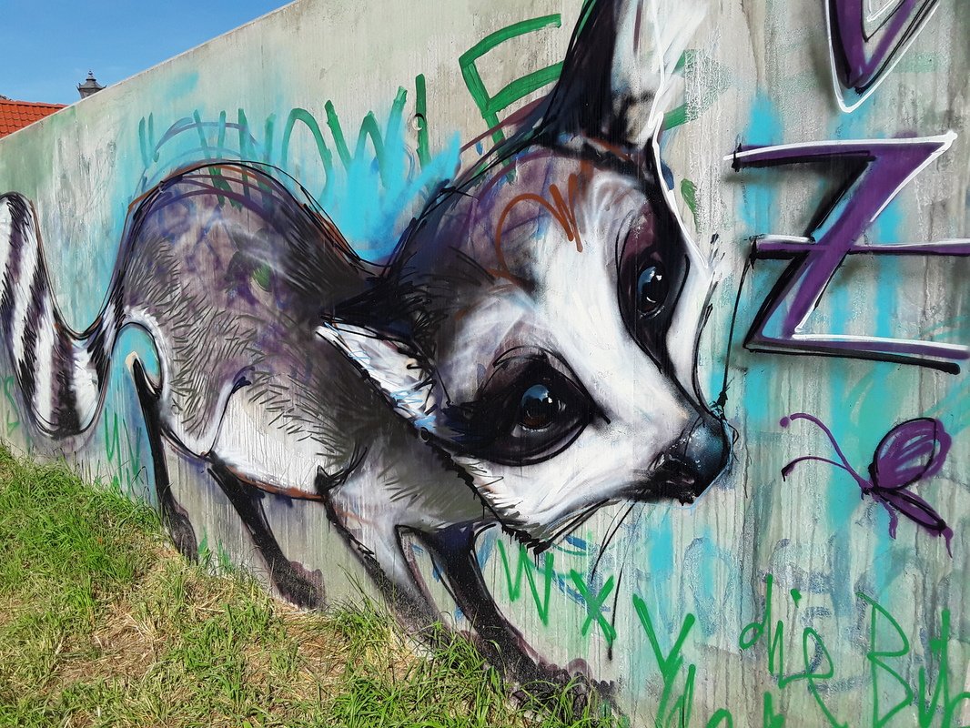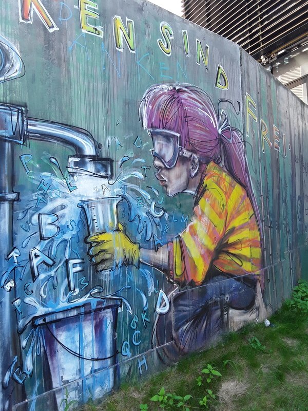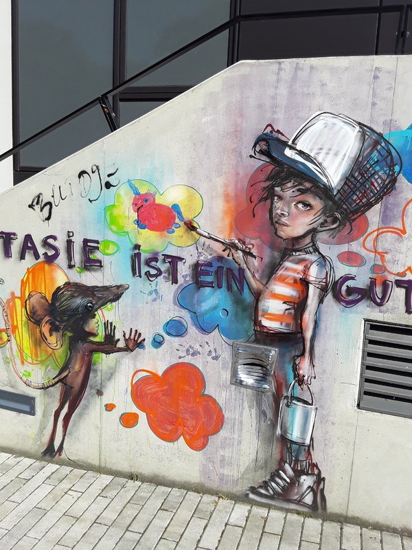 When I went 2 days ago a walk in the adjacent Bad Vilbel about 15 minutes from Frankfurt I made a great discovery. A whole wall along a real work of art full of different graffiti pictures. I was very enthusiastic because here were great artists at the work Looks like great.