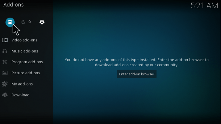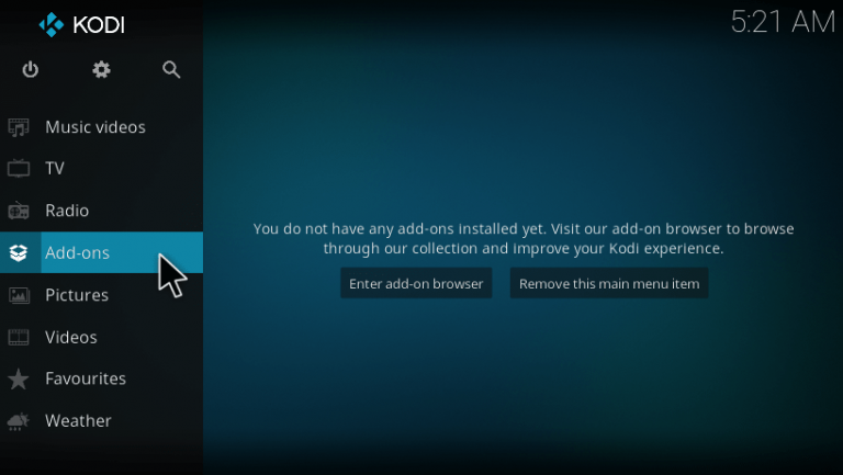 - Open kodi. On your home screen, go to addons which you can find on the menu.