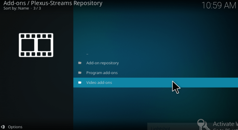 - When you open Plexus stream repository, you can find program addons and video addons. Since we are looking for a video addon, choose video addons.