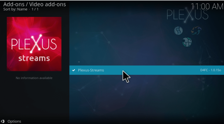 - Now go back to Plexus kodi stream addon, now you can find an open button at the left bottom of the screen. Just click on it to open the addon.