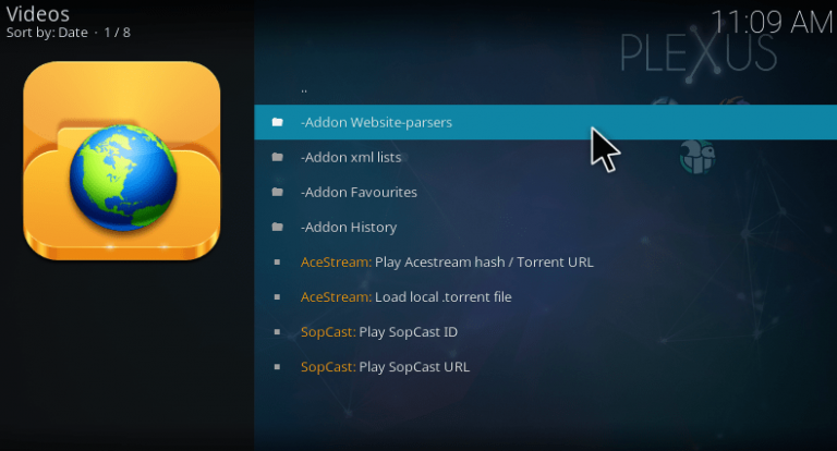 - Within Plexus stream addon, you can find Addon website parsers, Acestream player, and sopcast player. They also provide an option to add as favorite. Your history will also be saved which makes things easier.