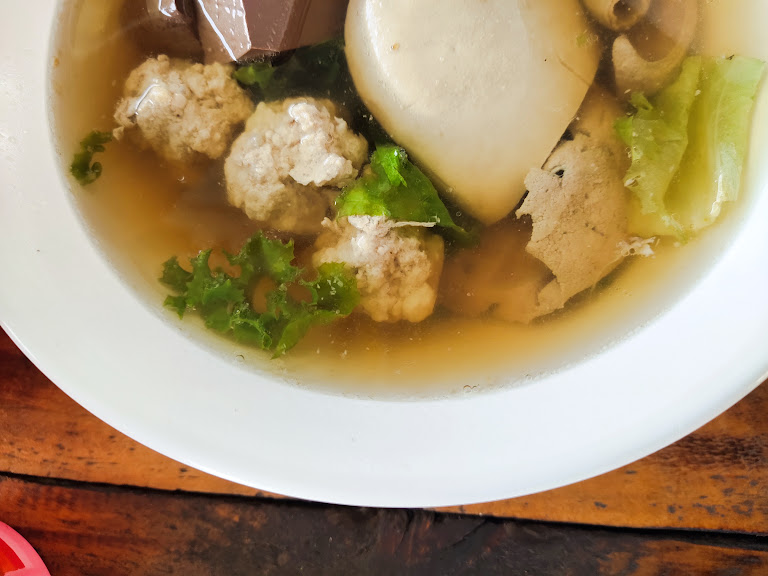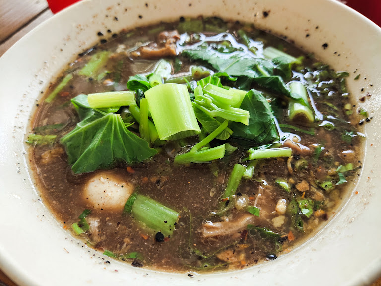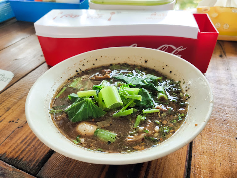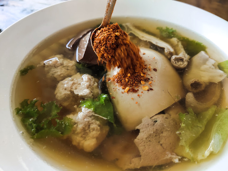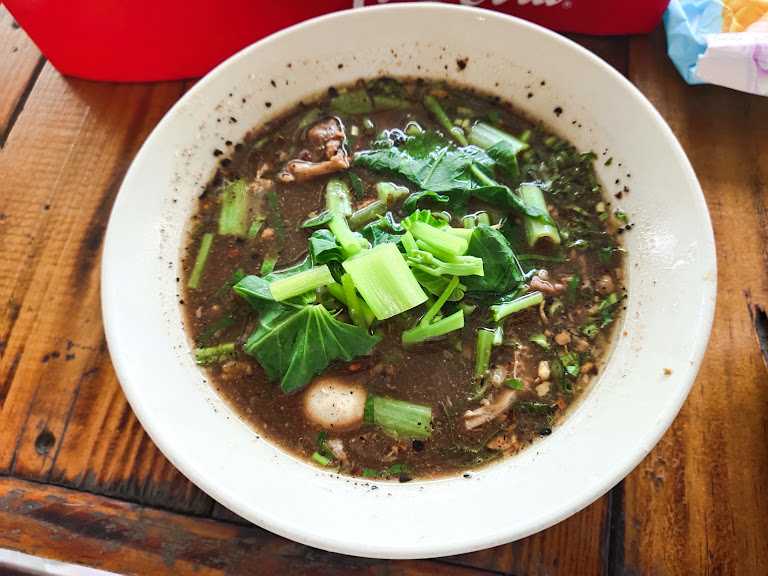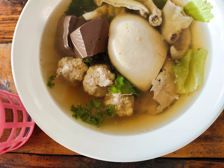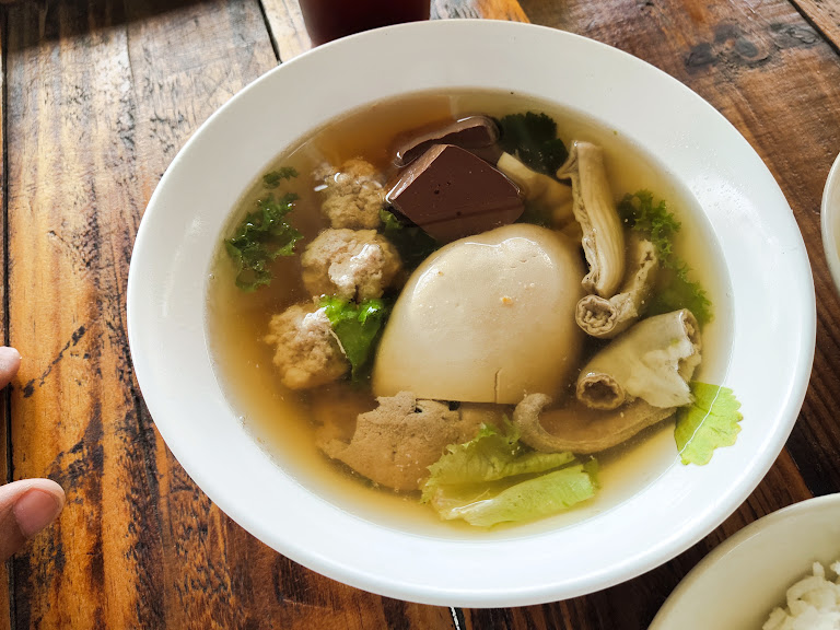 - ต้มเลือดหมู: ซุปอีกถ้วยที่รสชาติจัดจ้านถึงเครื่องพริกไทยดำ เลือดหมูนิ่มๆ หมูสับ และผักตำลึง ทำให้ซุปถ้วยนี้อร่อยจนหยุดไม่ได้