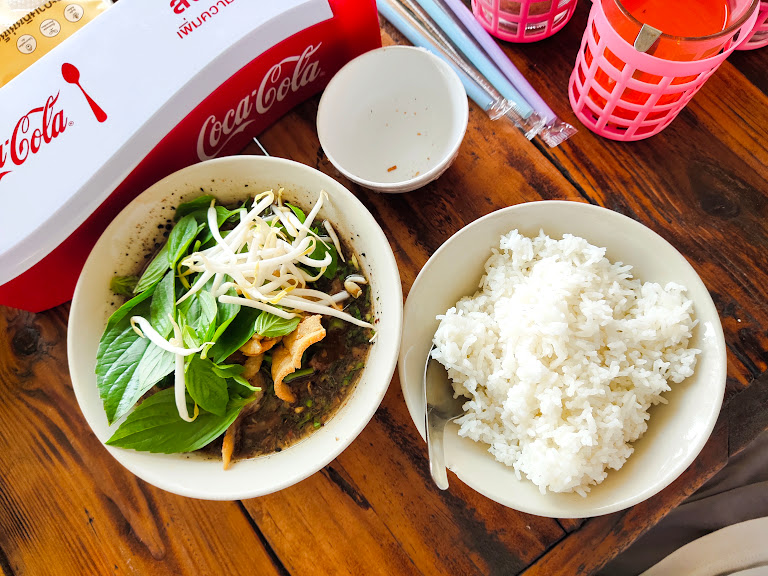 This meal offers a delightful combination of flavors and diverse nutritional value. Kuay Teow Rua and Kao Lao provide energy and protein, while plain rice is a good source of carbohydrates. Tom Lued Moo stands out for its high iron content. However, it's important to consume these dishes in moderation and pay attention to hygiene for good health.