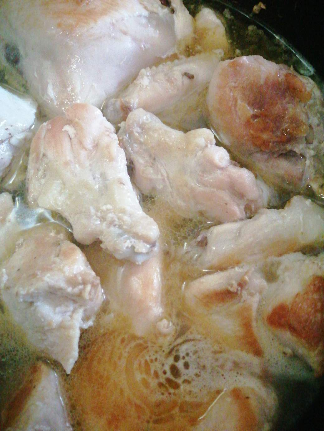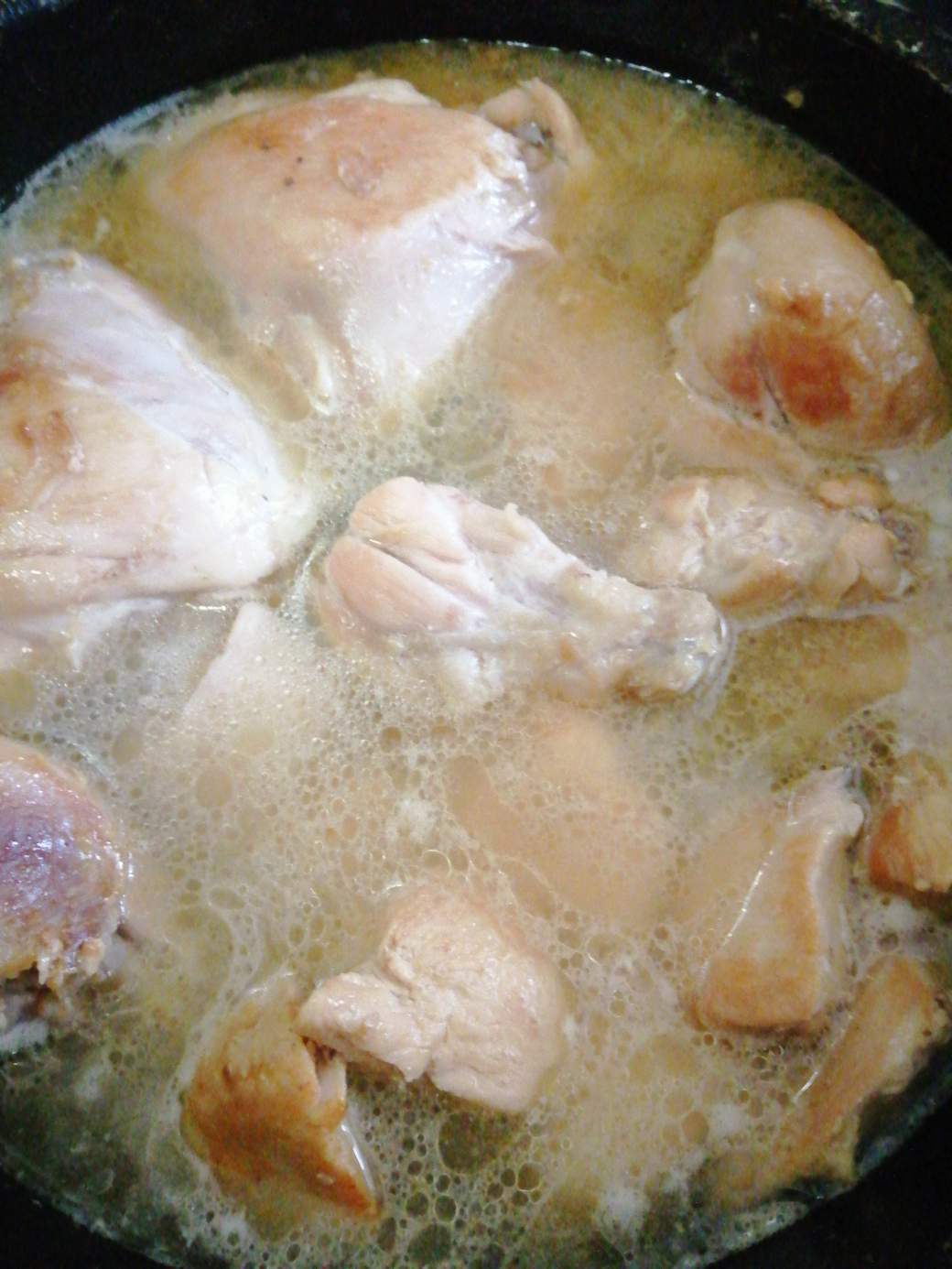 Soy maniática con el pollo, por ello le doy hasta tres cocciones variando la intensidad del fuego, pero me aseguro que tenga una a fuego alto por quince minutos.