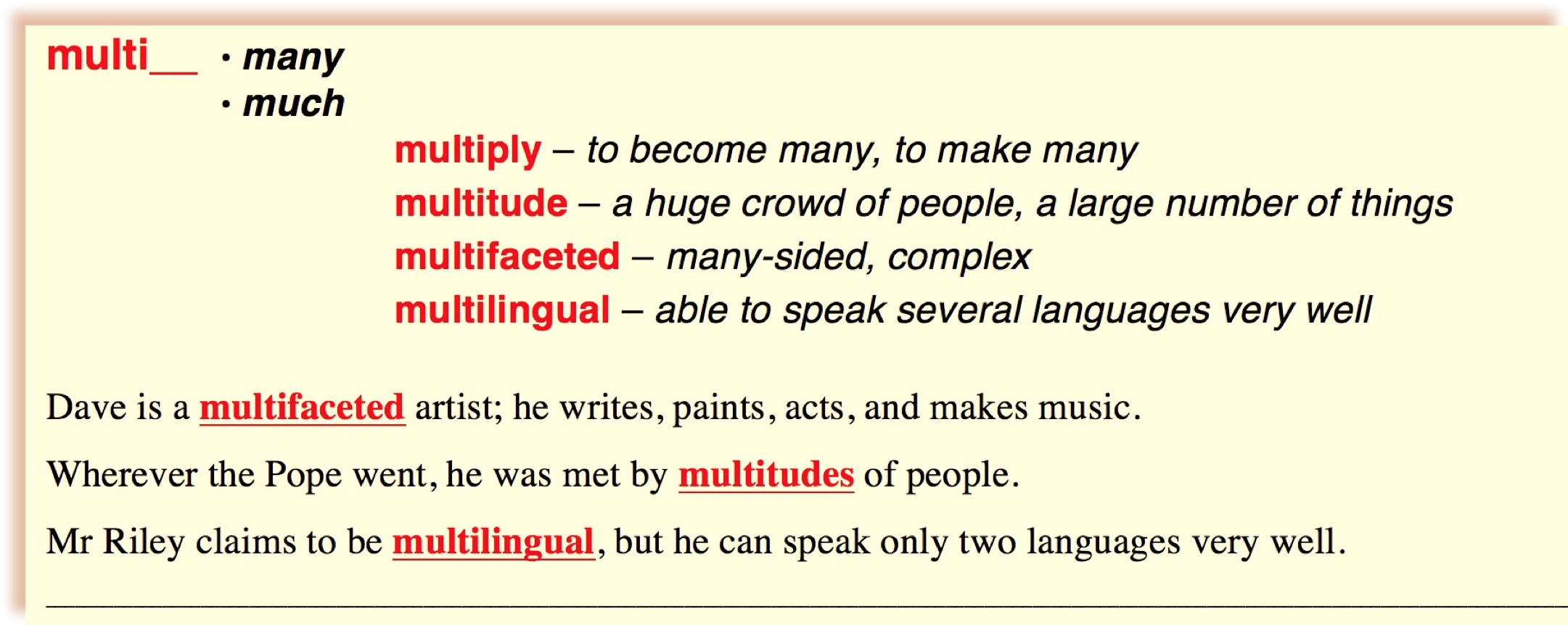 Vocab-ability Prefix–298 (multi__ = many, much) – A More Powerful Vocabulary (earn UpVotes with “Vocab Practice” exercise)