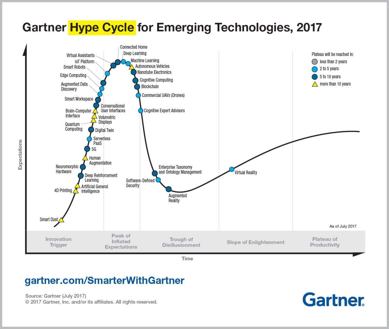 The Gartner Hype Cycle of emerging technologies || Der Gartner Hype Cycle für neu entwickelnde Technologien
