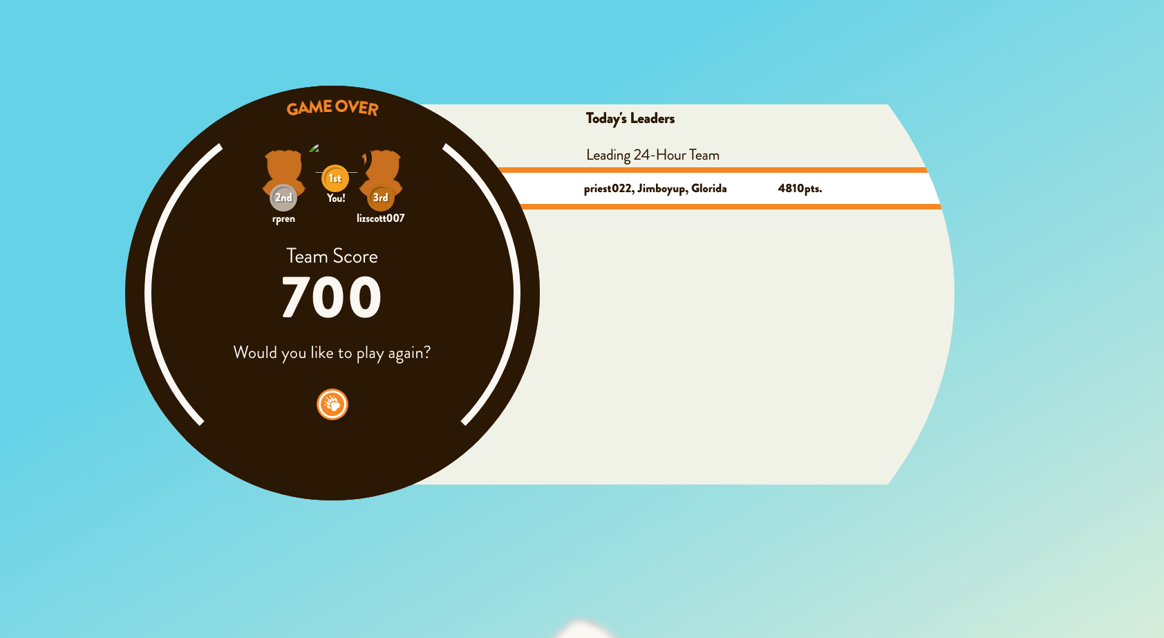 Since you only have 10 seconds to answer the questions I didn't screenshot further questions. But upon the close of the round, you are presented with the following screen as a recap of the game: