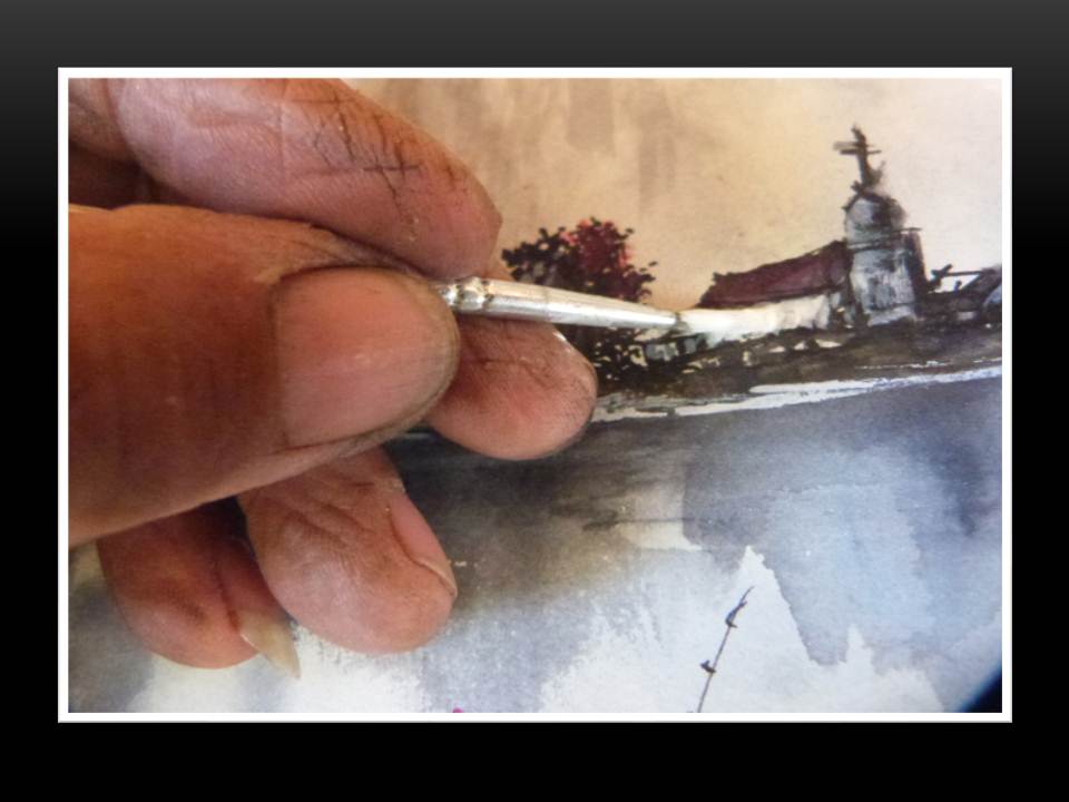 - Mientras trabajo, se incorporan detalles y más detalles, hasta lograr lo deseado, es importante saber analizar el entorno de un paisaje, para así lograr los efectos, como las luces, sombras y colores, que le den vida visual a la obra.