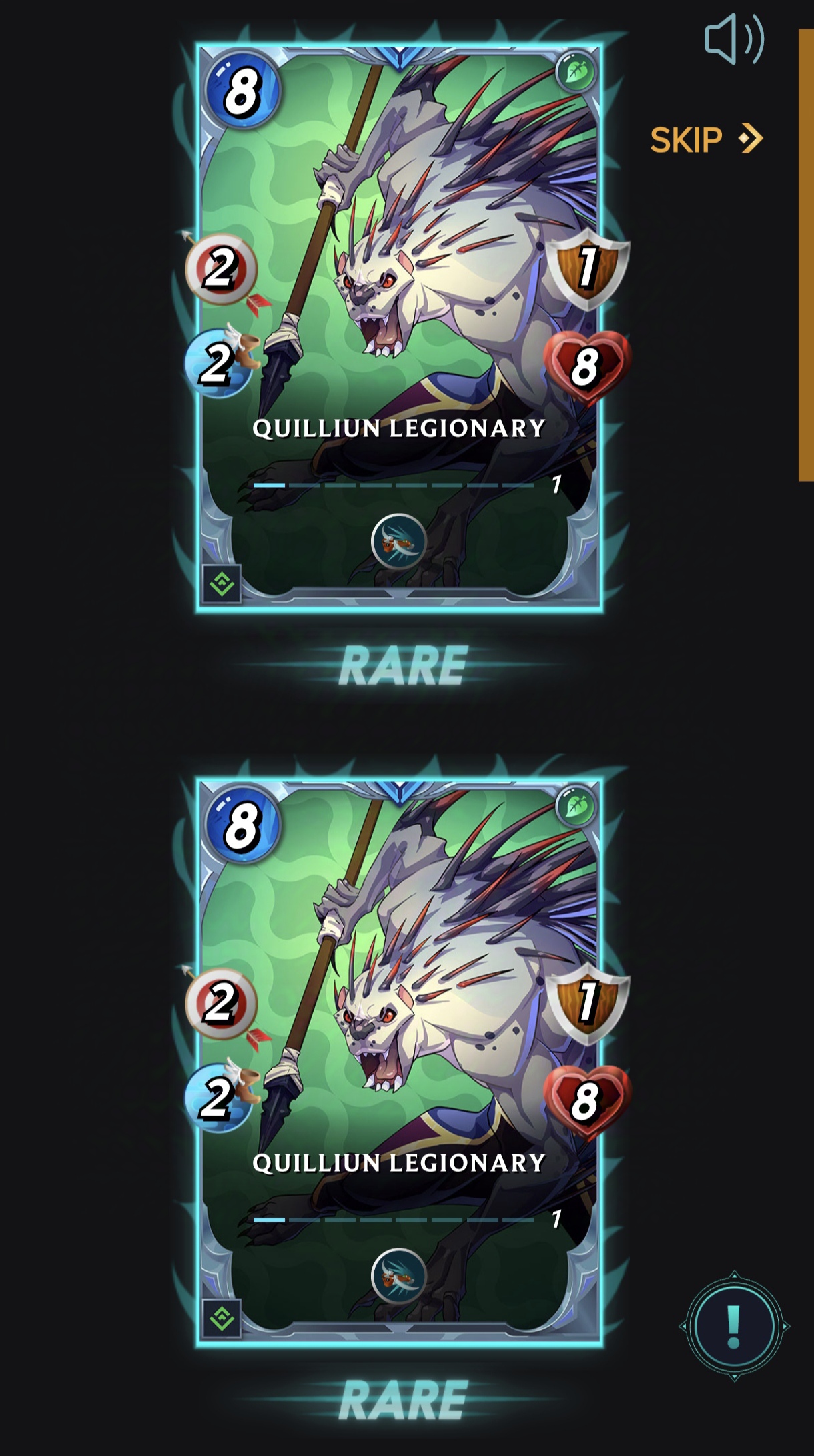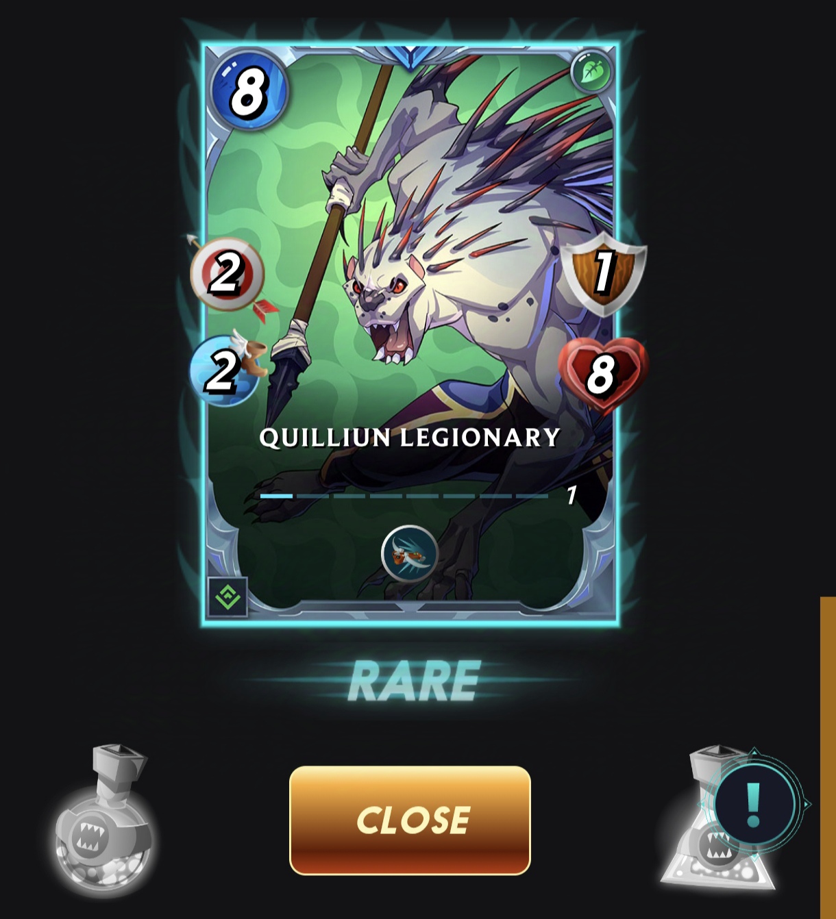 1 : I got threeQUILLIUN LEGIONARY cards in the First two and last draw which is an earth monster with two ranged attack abilities and it costs 8 mana.