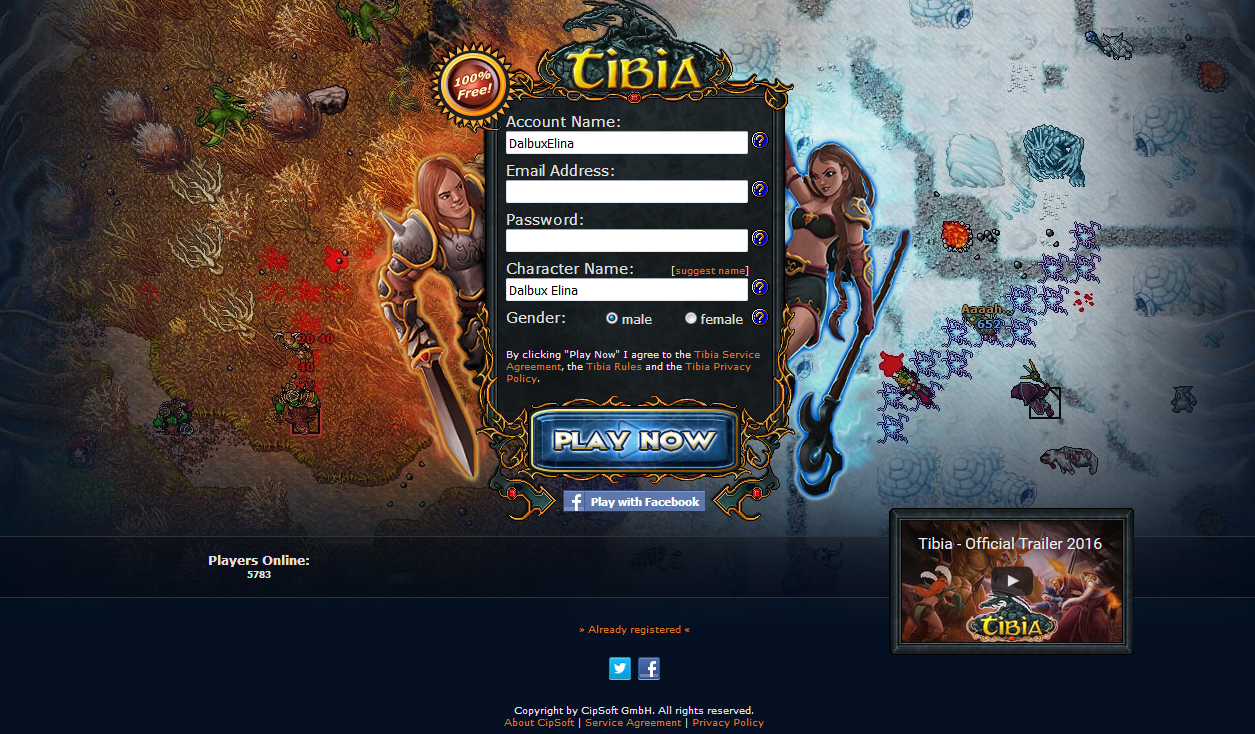 link para el registro de la pagina oficial de tibia