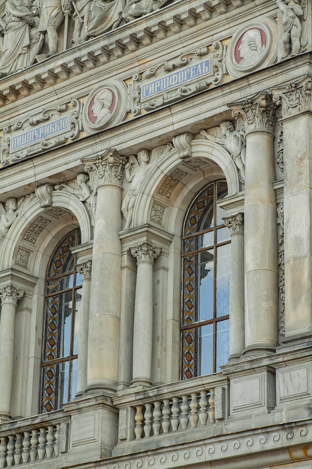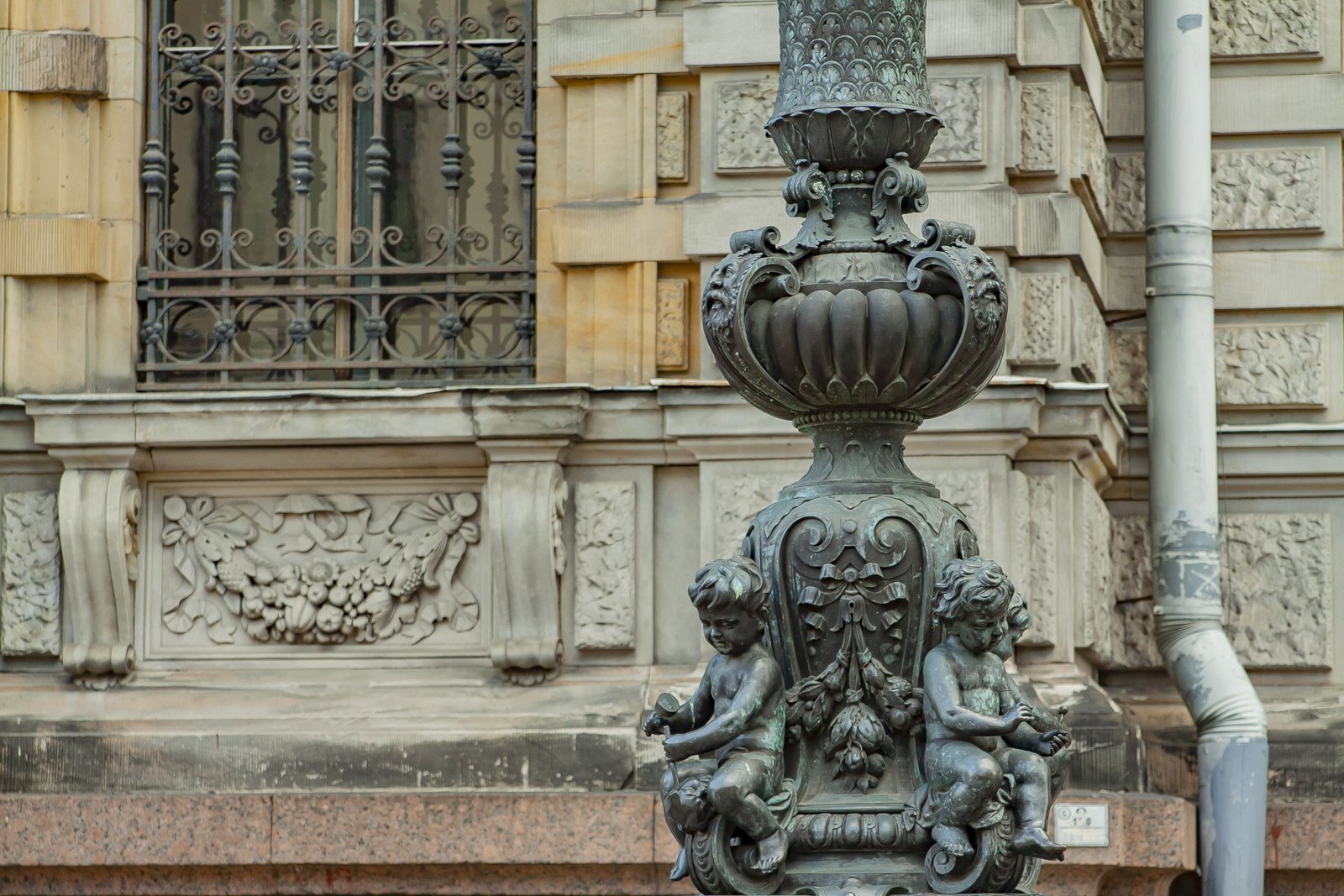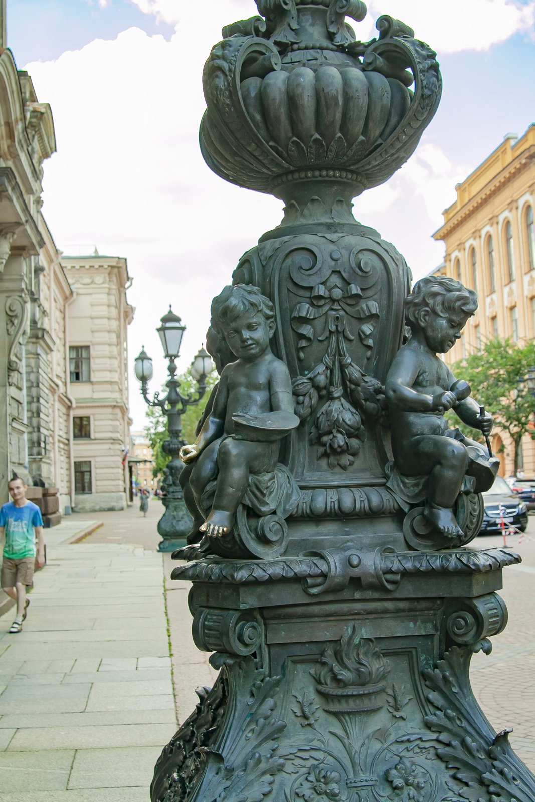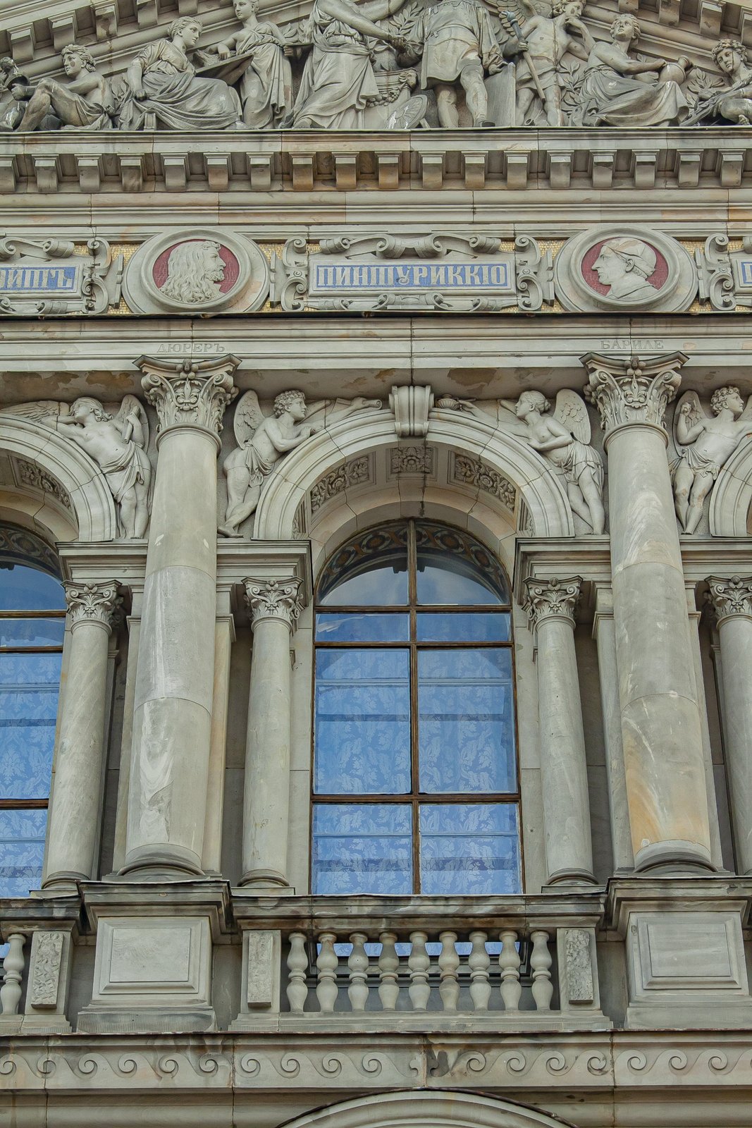 This time I didn't set myself the task of getting inside. It was extremely interesting for me to look at this building from the outside and take as detailed pictures of its exterior as possible. In addition to the building itself, lampposts are also of interest, of which there are several at the entrance to the building.