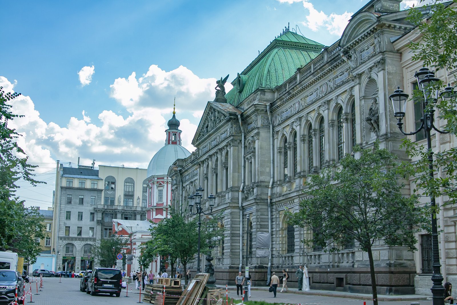 Hello everybody! Today we will continue our virtual walk through the streets and parks of St. Petersburg. Last time we stopped on Pestel Street near the Panteleimon Church, from here to the left of the Fontanka leads Solyan Lane, where the rich-looking building of the Stieglitz Art Academy is located.
