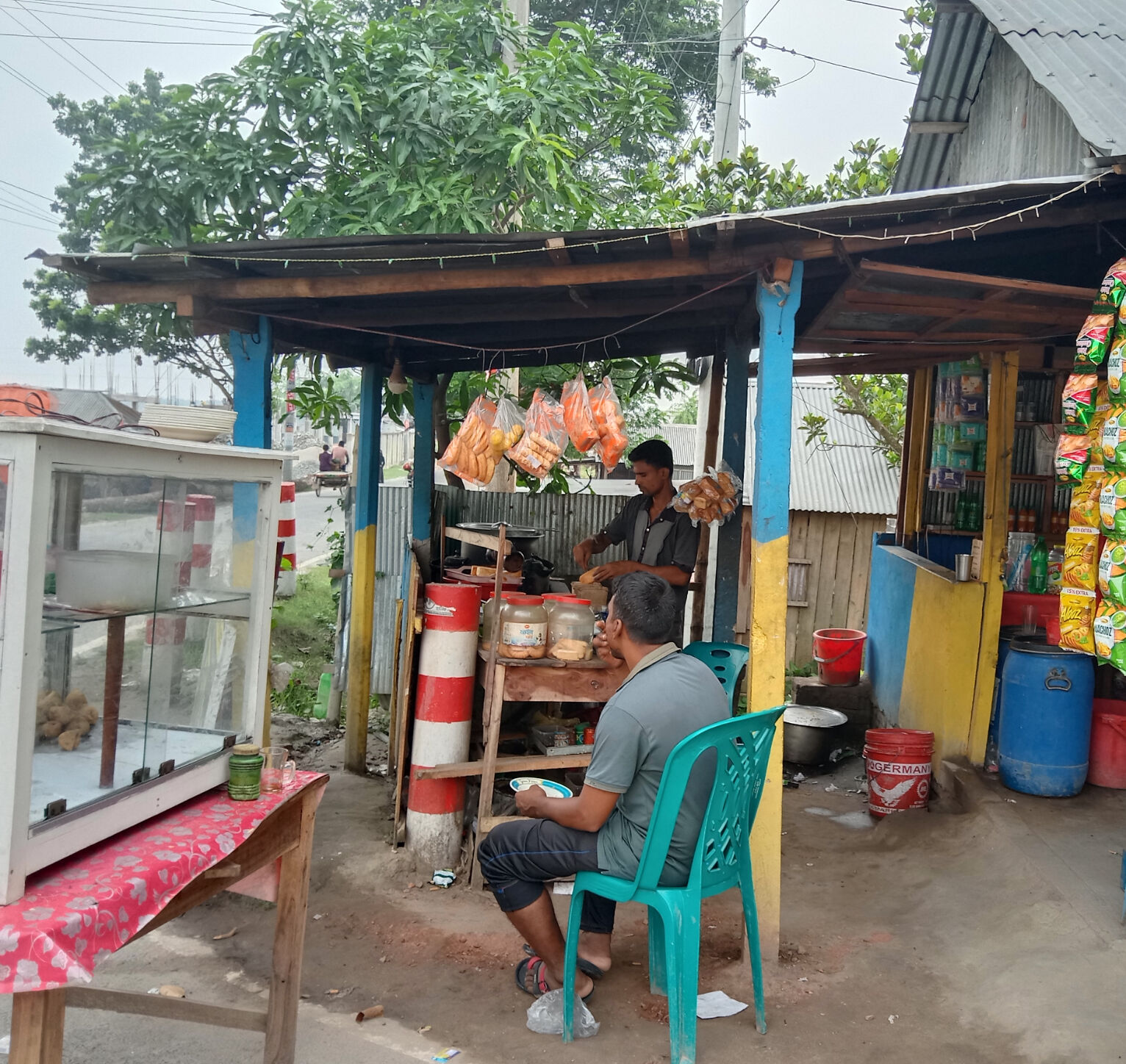 আমাদের কলেজ থেকে সেখানে যেতে মাত্র ১৫ মিনিট সময় লেগেছিলো। এই স্বল্প সময়েও আমরা অনেক মজা করেছিলাম। সেখানে পৌঁছে আমরা ব্রিজের সামনের দোকানটাতে গেলাম। দোকানের আংকেল আমাদের দেখিয়ে দিলো পুকুরের মধ্যে একটা সুন্দর জায়গা। যদিও সে জায়গাটা আমরা আগে খেয়াল করিনি পরে আমরা বুঝতে পারলাম সেখানেই চা পরিবেশন করা হয়।