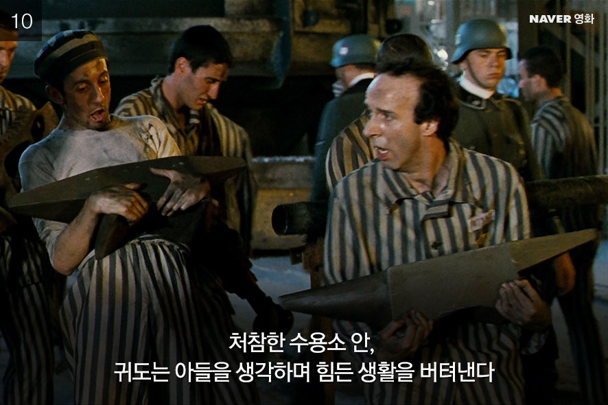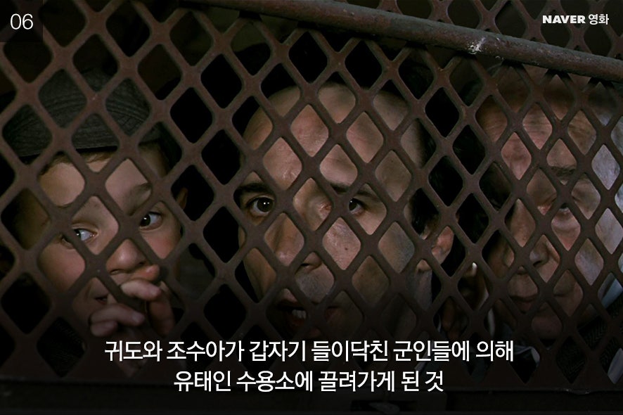 삶을 긍정하는 귀도를 보는 건 즐겁다. 영화의 명장면으로 꼽을 만한 몇몇 순간들이 있다. 자전거를 타고 내리막길을 달리던 귀도가 도라와 부딪혔을 때다. 일어서며 귀도는 “안녕하세요, 공주님!”이라고 유쾌하게 도라에게 인사를 건넨다. 두 사람의 사랑이 시작되는 순간이다. 또 하나는 아내를 찾아 나섰던 귀도가 군인들에게 발각됐을 때다. 귀도는 그 순간에도 아들을 안심시키며 조수아를 향해 사랑스러운 윙크를 보낸다. 어쩌면 영원한 작별이 될지도 모르는 그 순간에도 귀도는 생을 뜨겁게 긍정하고 끌어안는다.