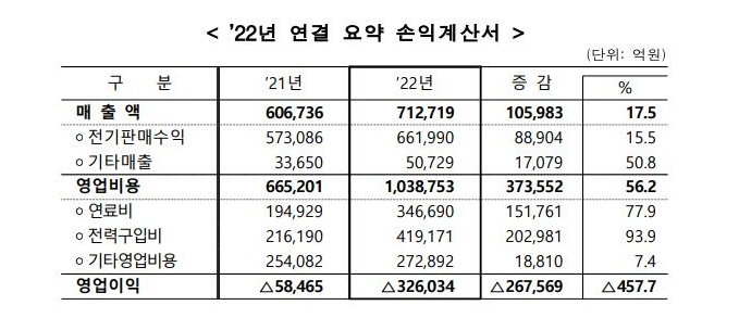 한전, 작년 32조6천억원 영업손실…사상 최악 경영실적