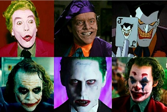 역대 조커 배우였던 시저 로메로, 잭 니콜슨, 마크 해밀, 히스 레저, 자레드 레토, 호아킨 피닉스, 카