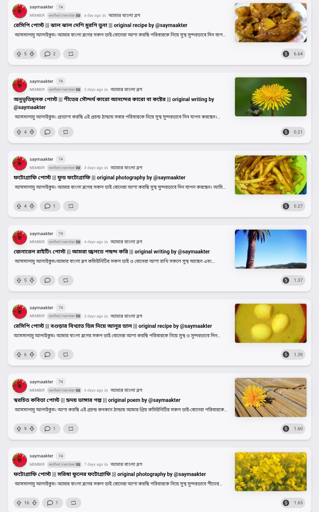 অথরের নাম: আমি মোছাঃ সায়মা আক্তার।আমি একজন ব্লগার, উদ্যোক্তা।কবিতা লিখতে, নতুন কোনো রেসিপি তৈরি করতে এবং নতুন নতুন ডিজাইন সৃষ্টি করতে স্বাচ্ছন্দ্য বোধ করি।আমি উদ্যোক্তা জীবনে সব সময় গ্রামের অবহেলিত মহিলাদের নিয়ে কাজ করি।আর এই অবহেলিত মহিলাদের কাজ নিয়ে দেশের স্বনামধন্য কিছু প্রতিষ্ঠানে প্রোভাইড করি এবং দেশের গণ্ডি পেরিয়ে বর্তমানে বিদেশেও রপ্তানি করছি।আর এসব কিছুর পিছনে আমার এই অবহেলিত মহিলাদের উৎসহ এবং উদ্দীপনায় সম্ভব হয়েছে।তাই সব সময় আমি অবহেলিত মানুষের পাশে থাকতে এবং অবহেলিত মানুষের মুখে হাসি ফোটাতে পারলে খুব ভালো লাগে।এজন্যই সব সময় অবহেলিত মানুষের পাশে থাকার চেষ্টা করি এবং তাদের সহযোগিতায় নিজেকে সব সময় সম্পৃক্ত রাখি।আমি ২০২১ সালের আগস্ট মাসে স্টিমিটে যুক্ত হই।আমার বাংলা ব্লগে শুরু থেকে আছি এবং এখন পর্যন্ত আমার বাংলা ব্লগেই ব্লগিং করে যাচ্ছি।