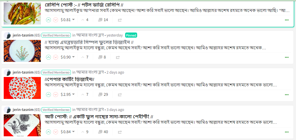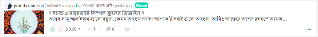 দারুন একটি পোস্ট ফিচারড আর্টিকেল সিলেক্ট করলেন। জেরিন তেসমিন আপুর পোস্ট গুলো আমার অত্যন্ত ভালো লাগে। বিশেষ করে আপুর হ্যান্ড এমব্রয়ডারি গুলো চমৎকার হয়। প্রতিনিয়ত উনি হ্যান্ড এমব্রয়ডারি গুলো শেয়ার করে যাচ্ছেন। যা দেখে অনেক বেশি অনুপ্রাণিত হয়। আজকে এমন সুন্দর একটি পোস্ট ফিচারড আর্টিকেলে দেখতে পেয়ে আমার অনেক বেশি ভালো লেগেছে।