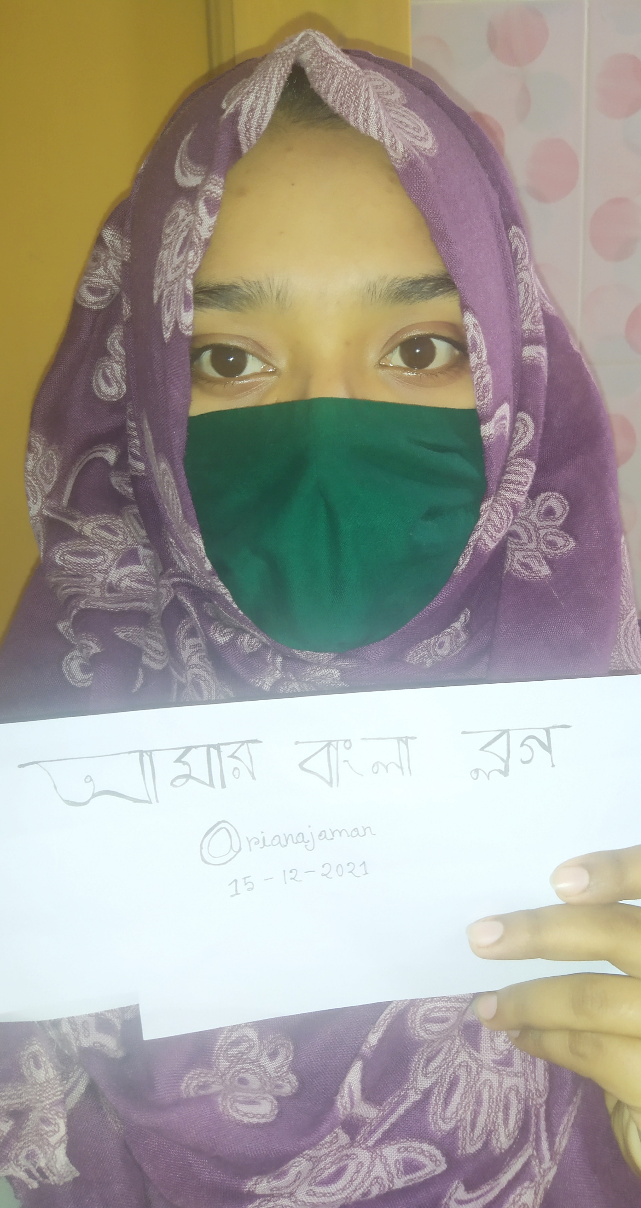 তবে রিয়ানা বলেই সবাই আমাকে ডাকে। আমি সবে মাত্র অনার্স প্রথম বর্ষের একজন ছাত্রী। এখন পড়াশুনার পাশাপাশি "আমার বাংলা ব্লগে" নিয়মিত সব নিয়ম মেনে কাজ করার চেষ্টা করছি। আমি আমার বিগত দিনের পরিচিতি পোস্টে আমার পরিচয়টি বিস্তারিত তুলে ধরেছিলাম , তাই আর বেশি কিছু না বলে আমি আমার পরীক্ষার উত্তর পত্র লিখতে শুরু করি।