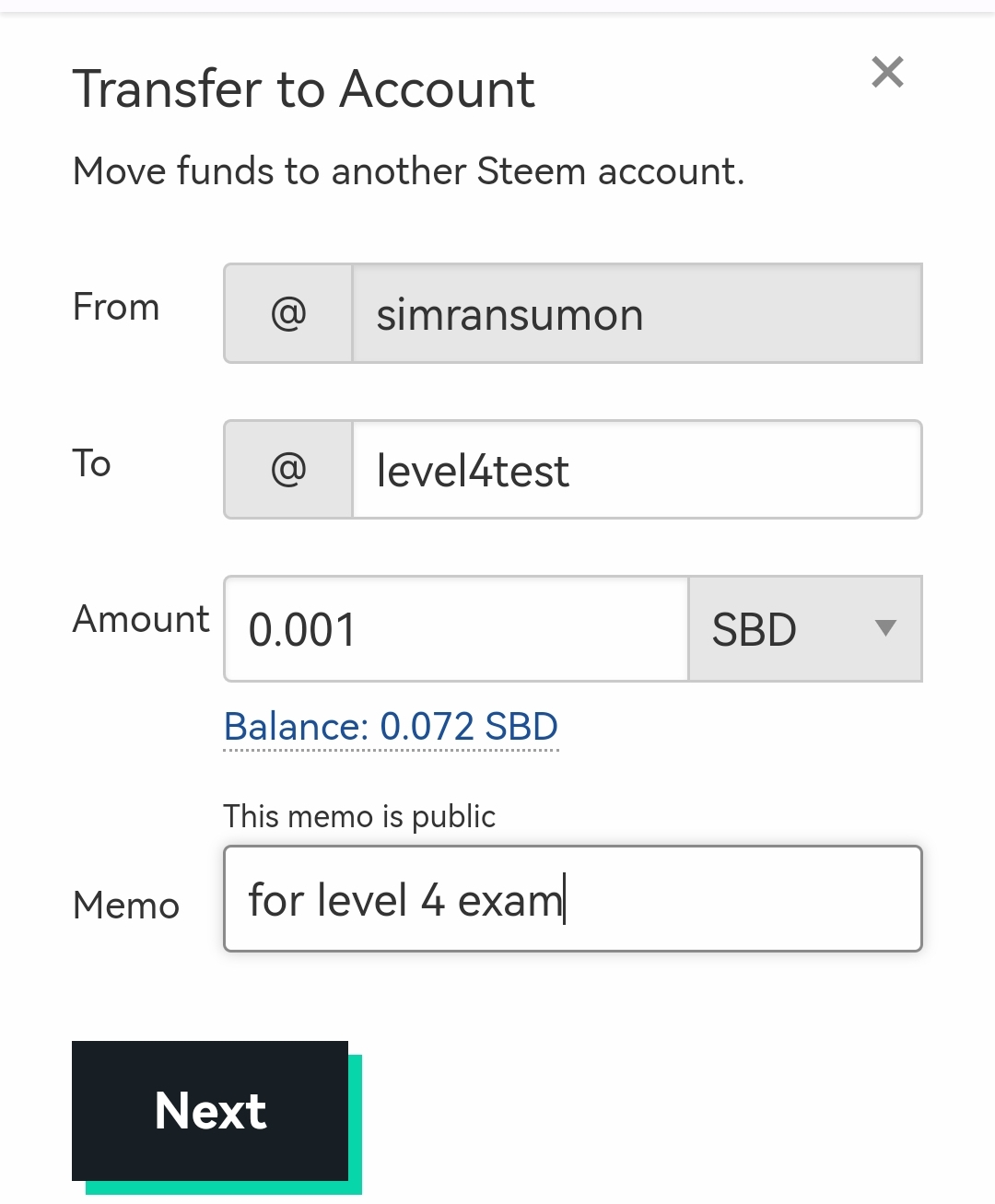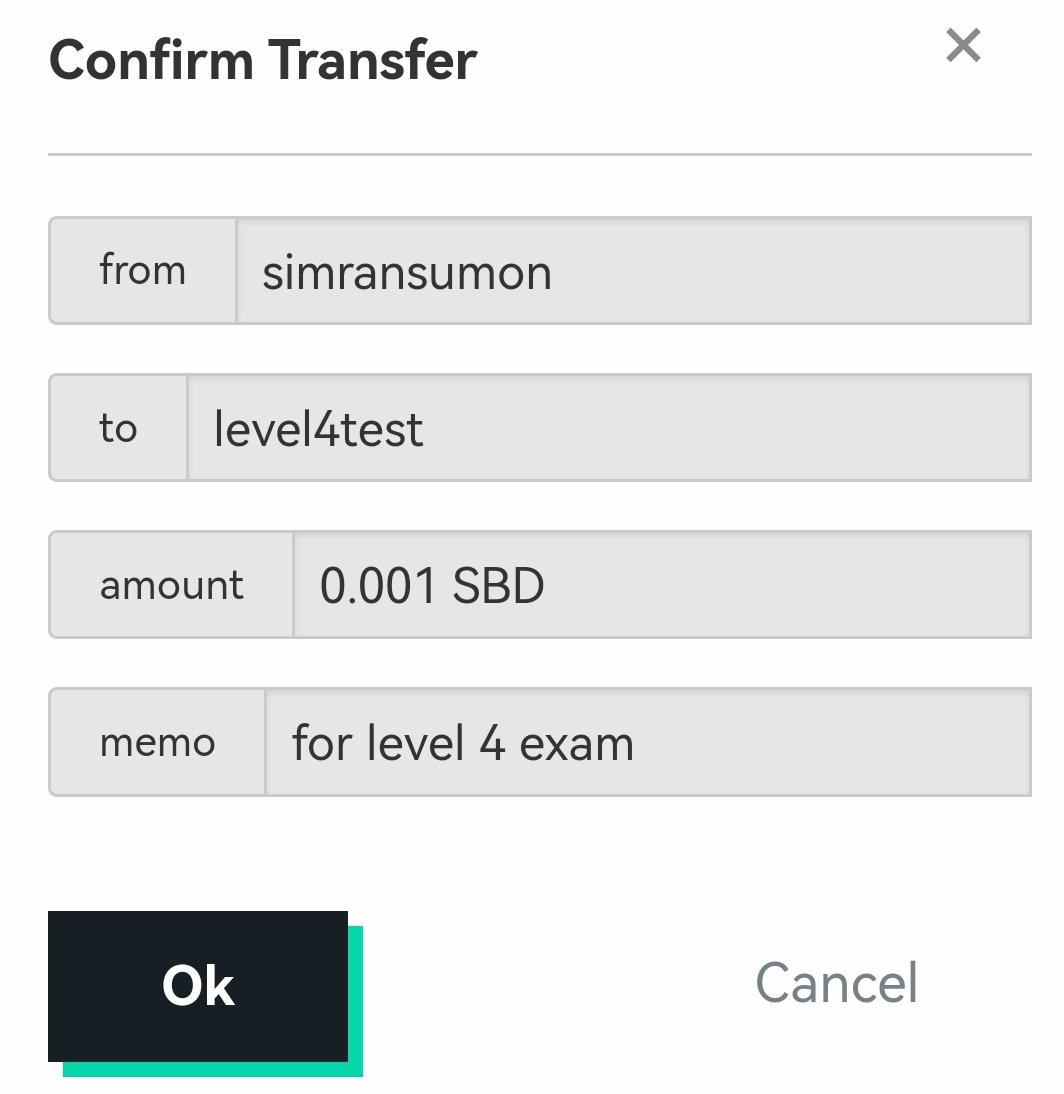 ২। প্রশ্ন: P2P এর মাধ্যমে আপনার Steemit অ্যাকাউন্ট হতে @level4test অ্যাকাউন্ট এ 0.001 SBD সেন্ড করুন এবং এটার স্ক্রিনশট শেয়ার করুন।