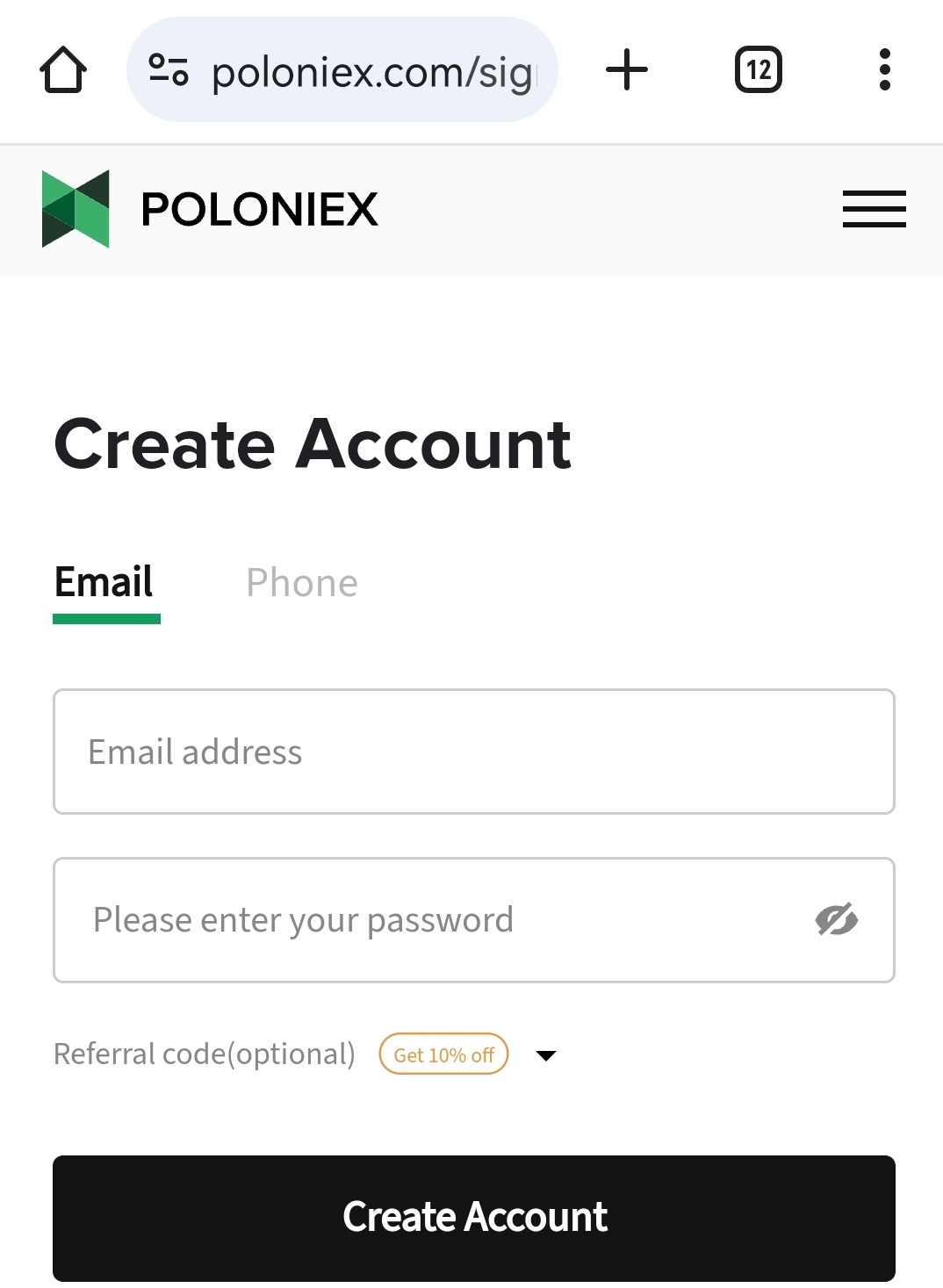 ৬। প্রশ্ন: Poloniex Exchange site এ একটি Account Create করুন।