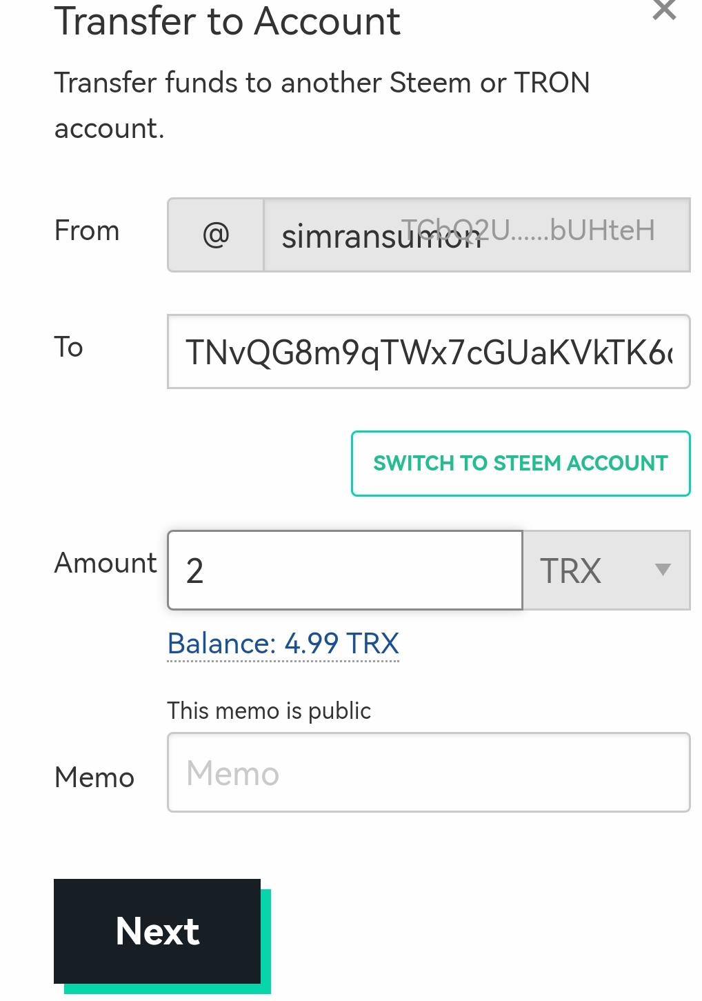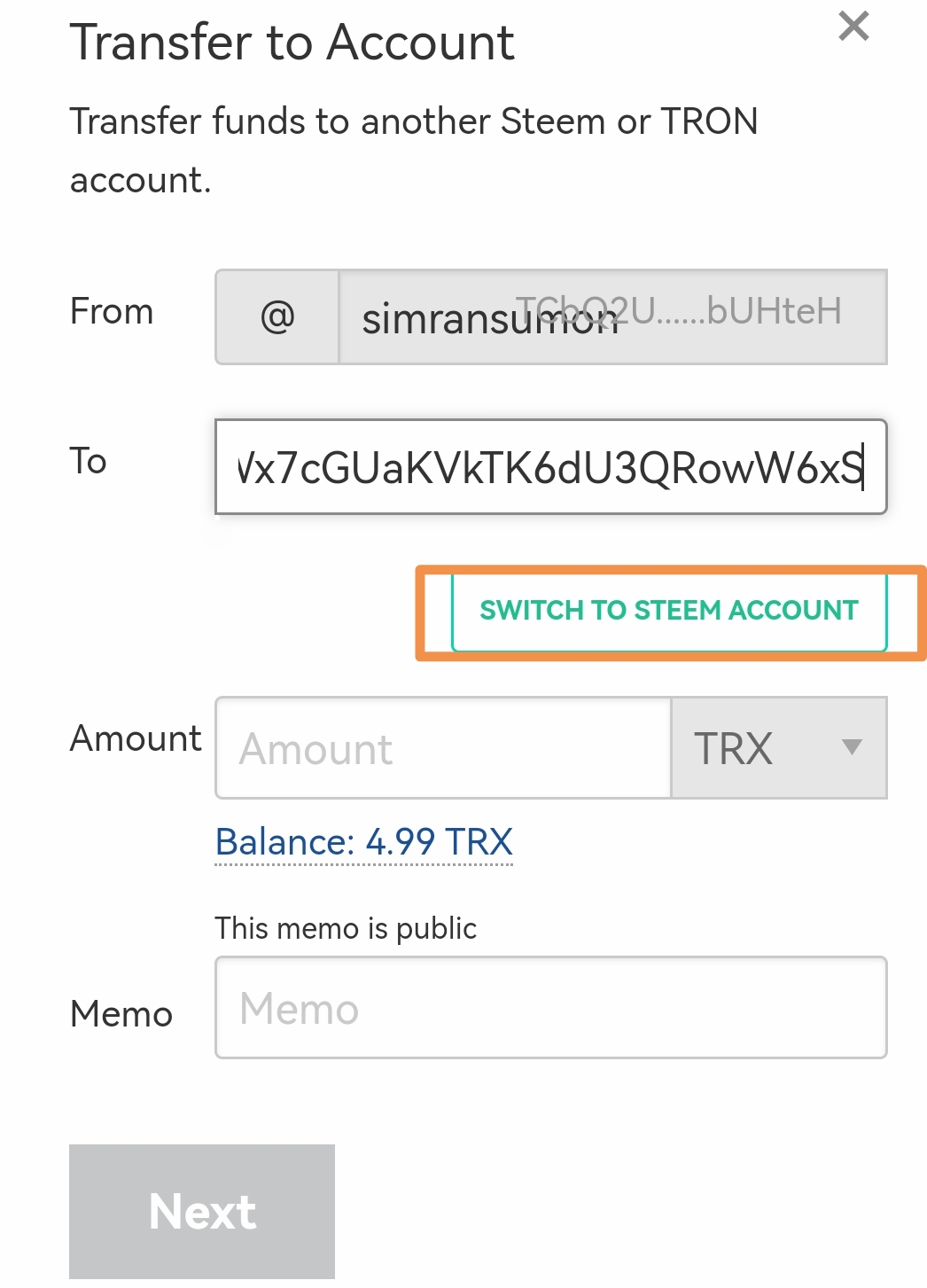 ৮। প্রশ্ন: আপনার Steemit অ্যাকাউন্ট হতে Poloniex Exchange site এ TRX Transfer করুন।