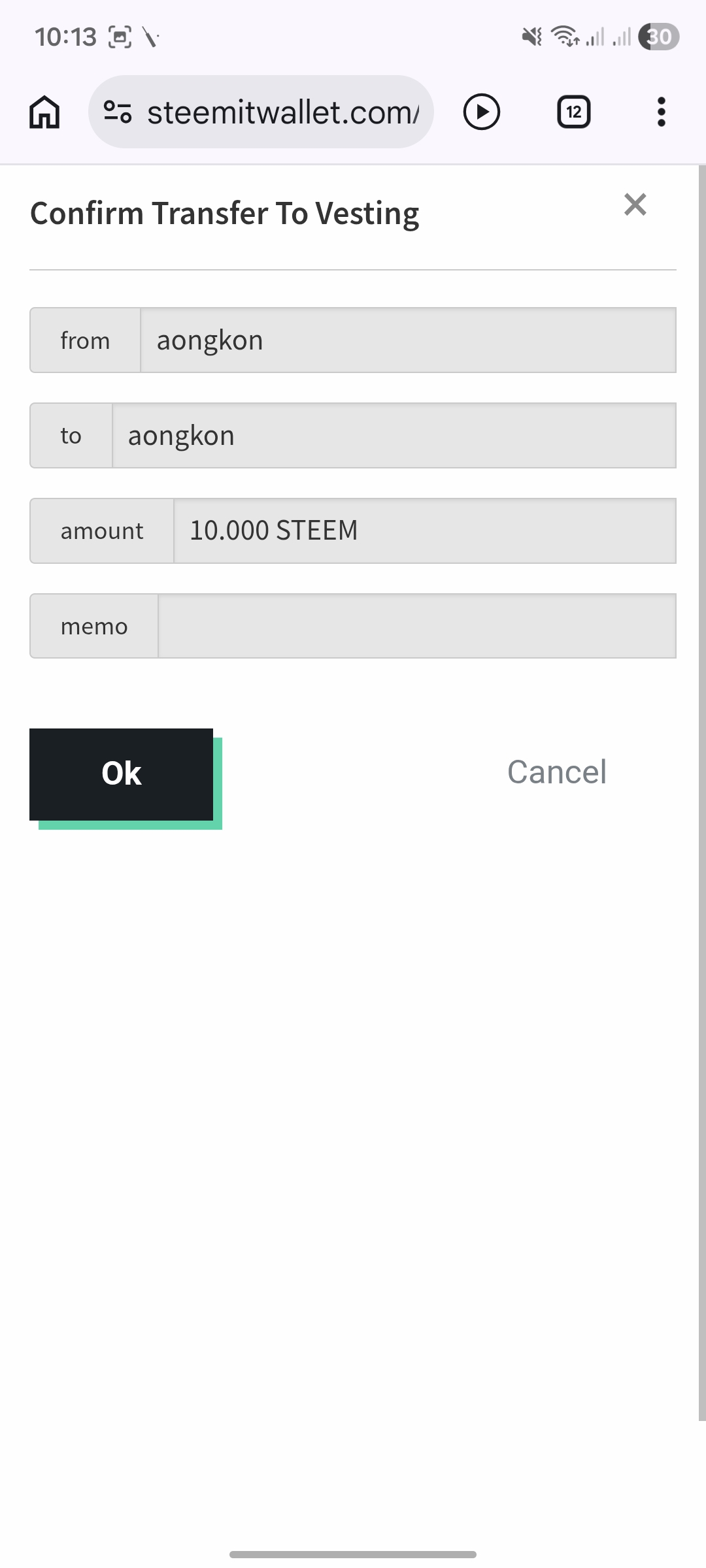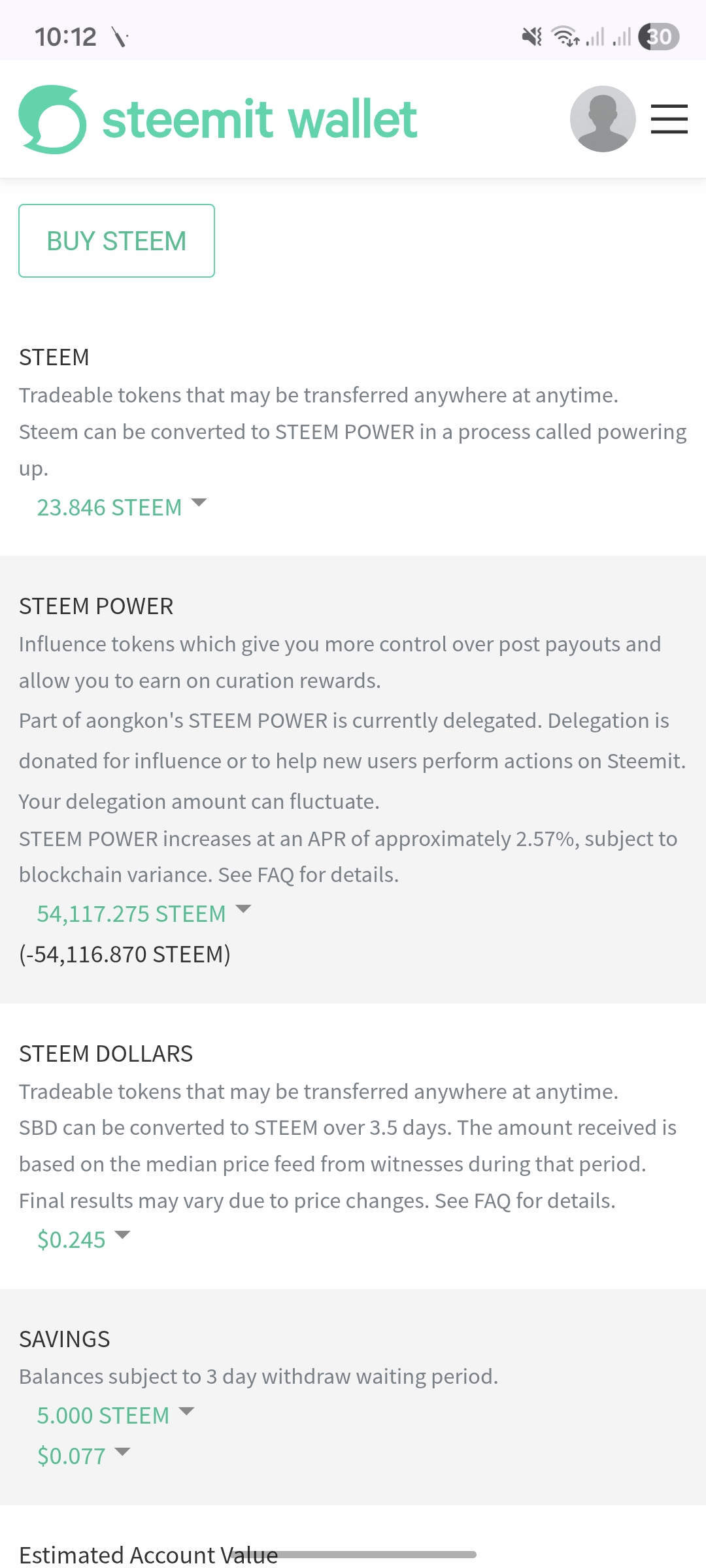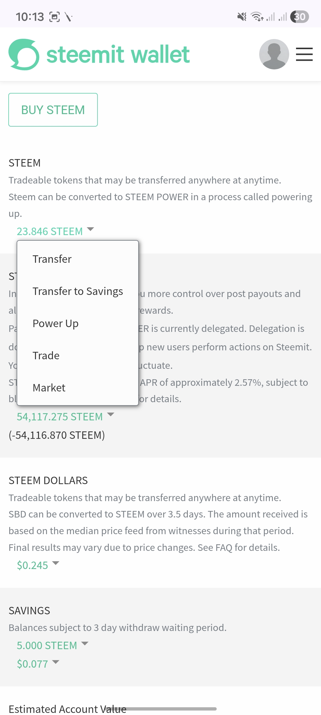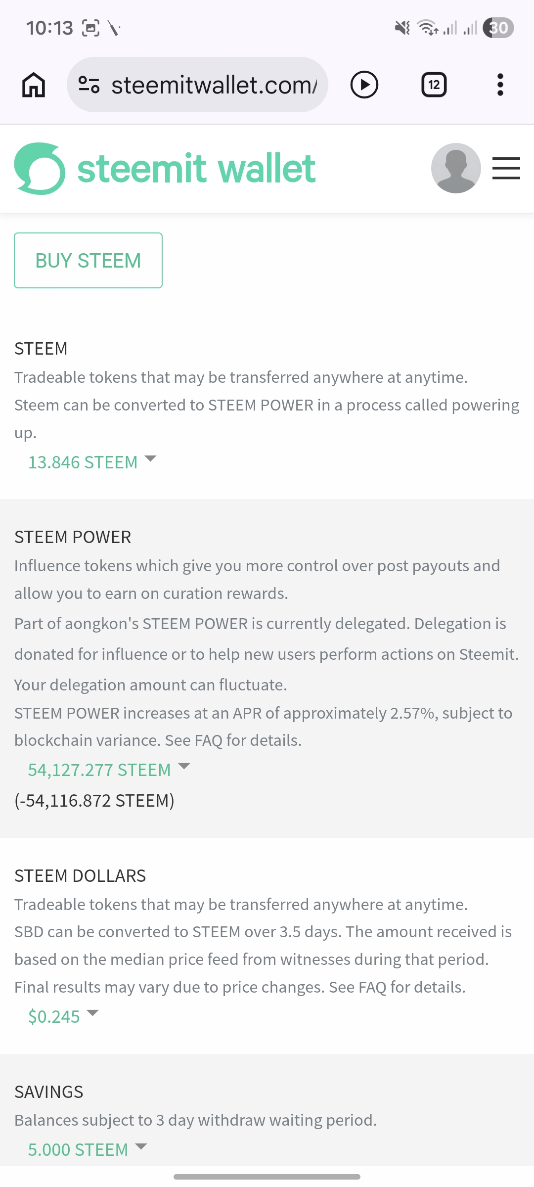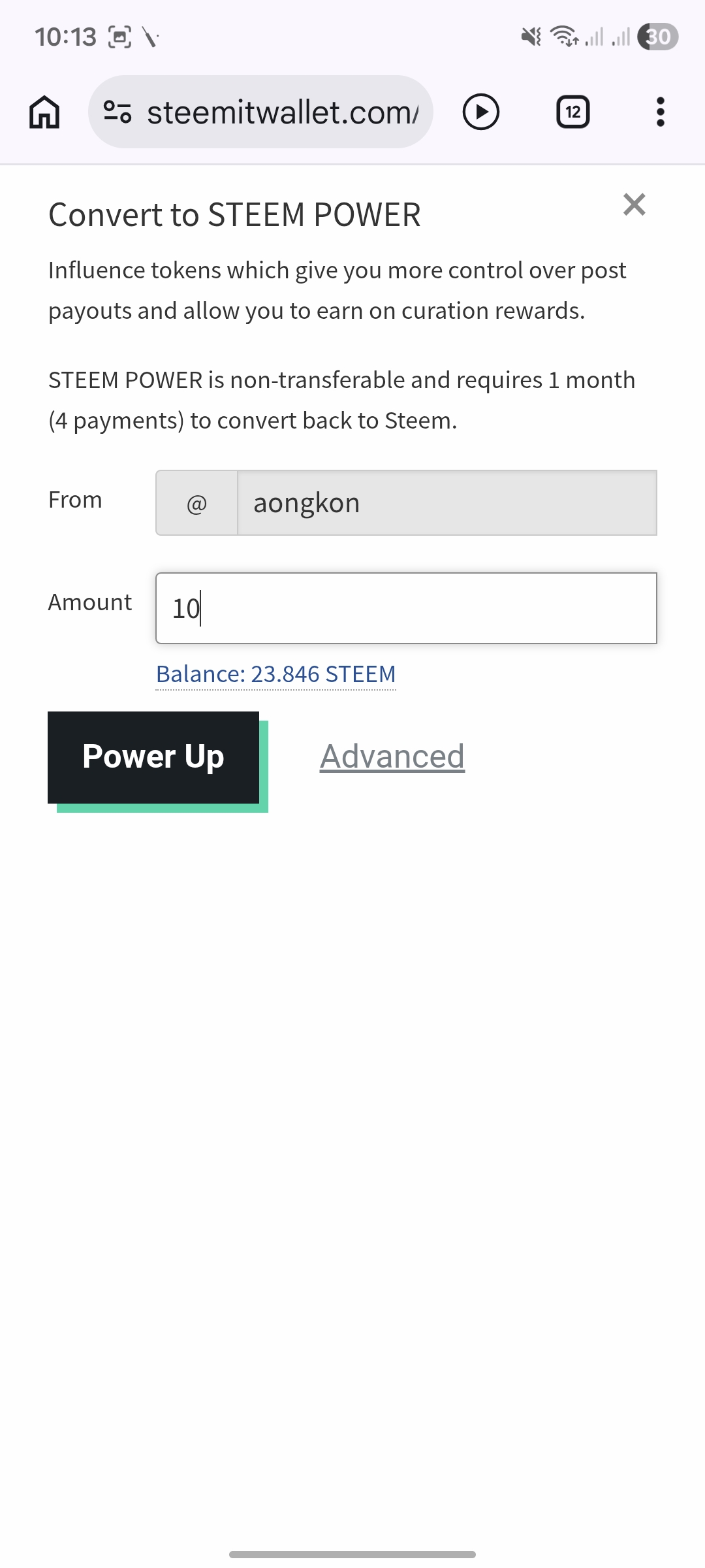 প্রথম ধাপে পাওয়ার আপ করার পূর্বে আমার ওয়ালেটের স্ক্রিনশর্ট। আমি এখন 10 স্টিম পাওয়ার আপ করবো।