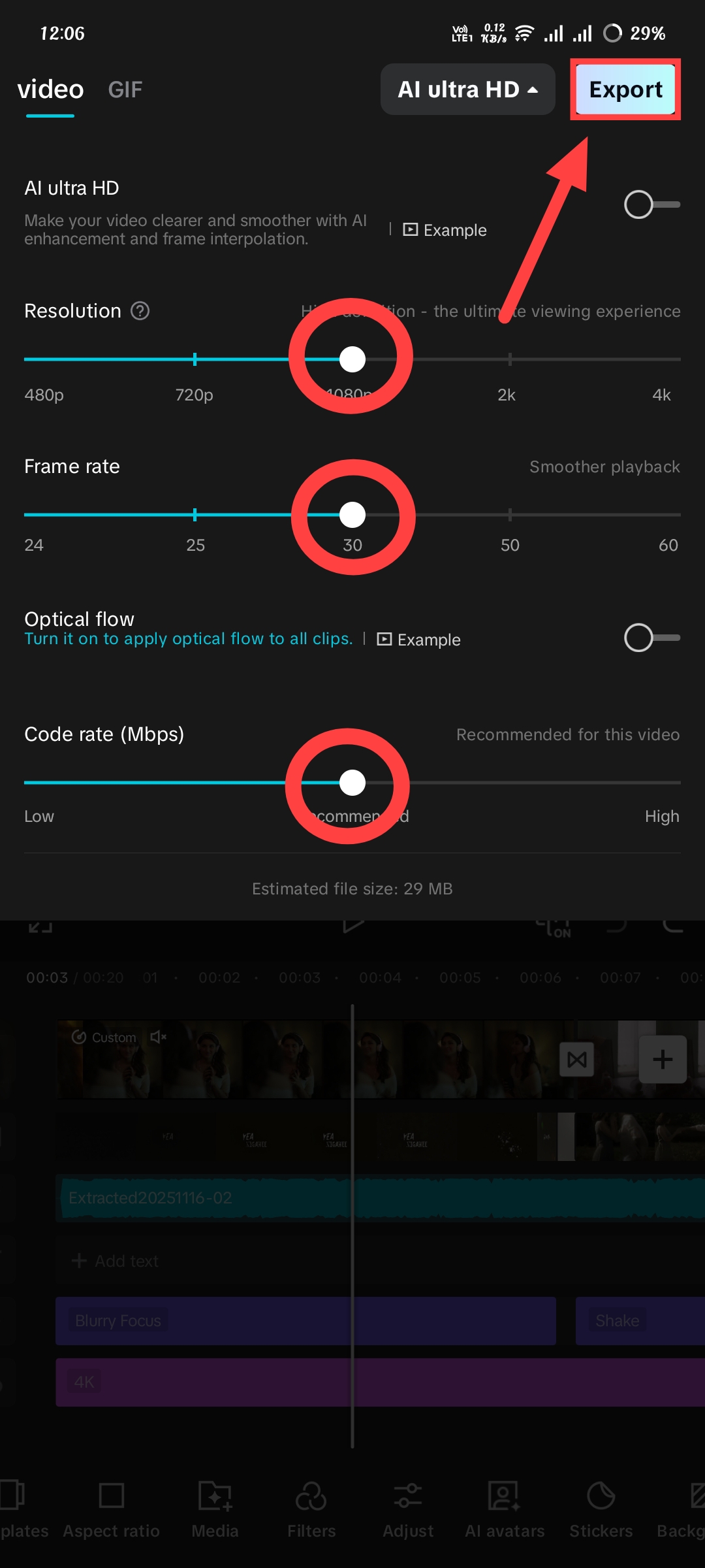 সবশেষে AI ultra HD অপশনে ক্লিক করে Video quality 1080p, FPS 30, Code rate : recommended দিয়ে Export করে নিয়েছি । আজকের মত এ পর্যন্তই, ভিডিও এর রেজাল্ট দেখতে হলে নিচে ক্লিক করেন ।
