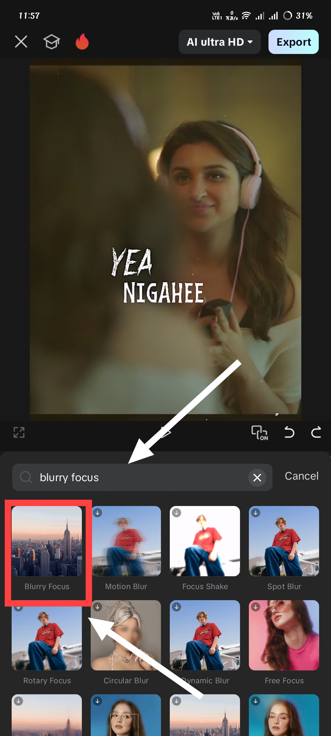 এরপর আমি Effects অপশনে গিয়ে সার্চ করেছি blurry focus এবং প্রথমে যেটা এসেছে সেটাতে ক্লিক করেছি । ক্লিক করার পর blurry focus এডজাস্ট অপশনে গিয়ে Speed : 05, Blur : 50 রেখেছি । এই ইফেক্টটাকে ভিডিও এর শুরু থেকে ৬ সেকেন্ড পর্যন্ত রেখেছি অর্থাৎ (০.০-৬.০ সেকেন্ড) ।