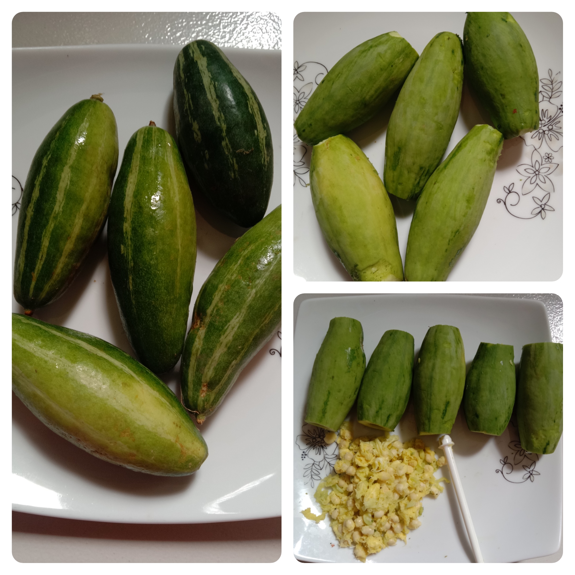 পাঁচটা পটল নিয়ে উপরের সবুজ অংশটি হালকা করে চেঁছে নিয়ে দুই পাশে কেটে নিয়েছি। তারপর একটি প্লাস্টিকের কাঠির সাহায্যে পটলের বিচি ও শাঁস গুলো বের করে নিয়েছি।