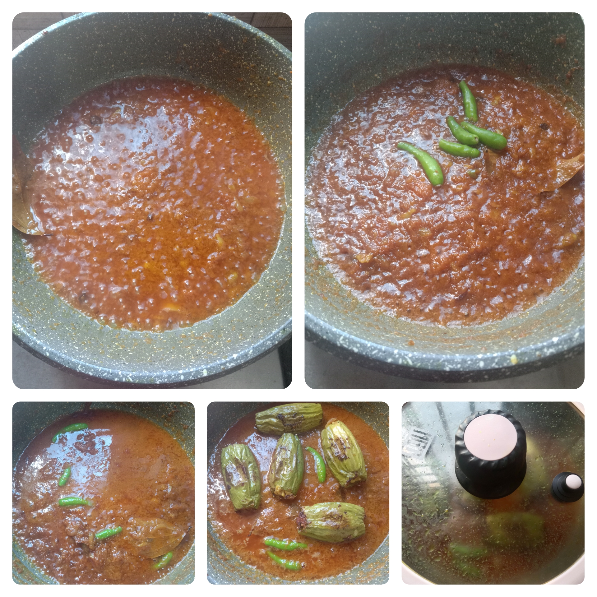 অল্প আঁচে অনেক সময় ধরে ঢেকে রেখেছি তারপর ঢাকনা খুলে একটু নেড়েচেড়ে নিয়েছি কয়েকবার। যখন জল শুকিয়ে মসলা থেকে তেল উঠে আসছে তখন চুলার আঁচ বন্ধ করে দিয়েছি।