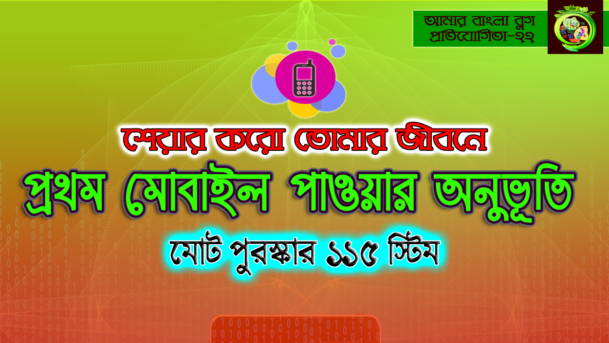 অসাধারণ একটি কনটেস্টের আয়োজন করা হয়েছে। প্রথম মোবাইল পাওয়ারর অনুভূতির গল্প খুব তারাতারি শেয়ার করবো সবার সাথে। আশা করি এই বারের কন্টেস্টে সবাই অংশগ্রহণ করবে।
