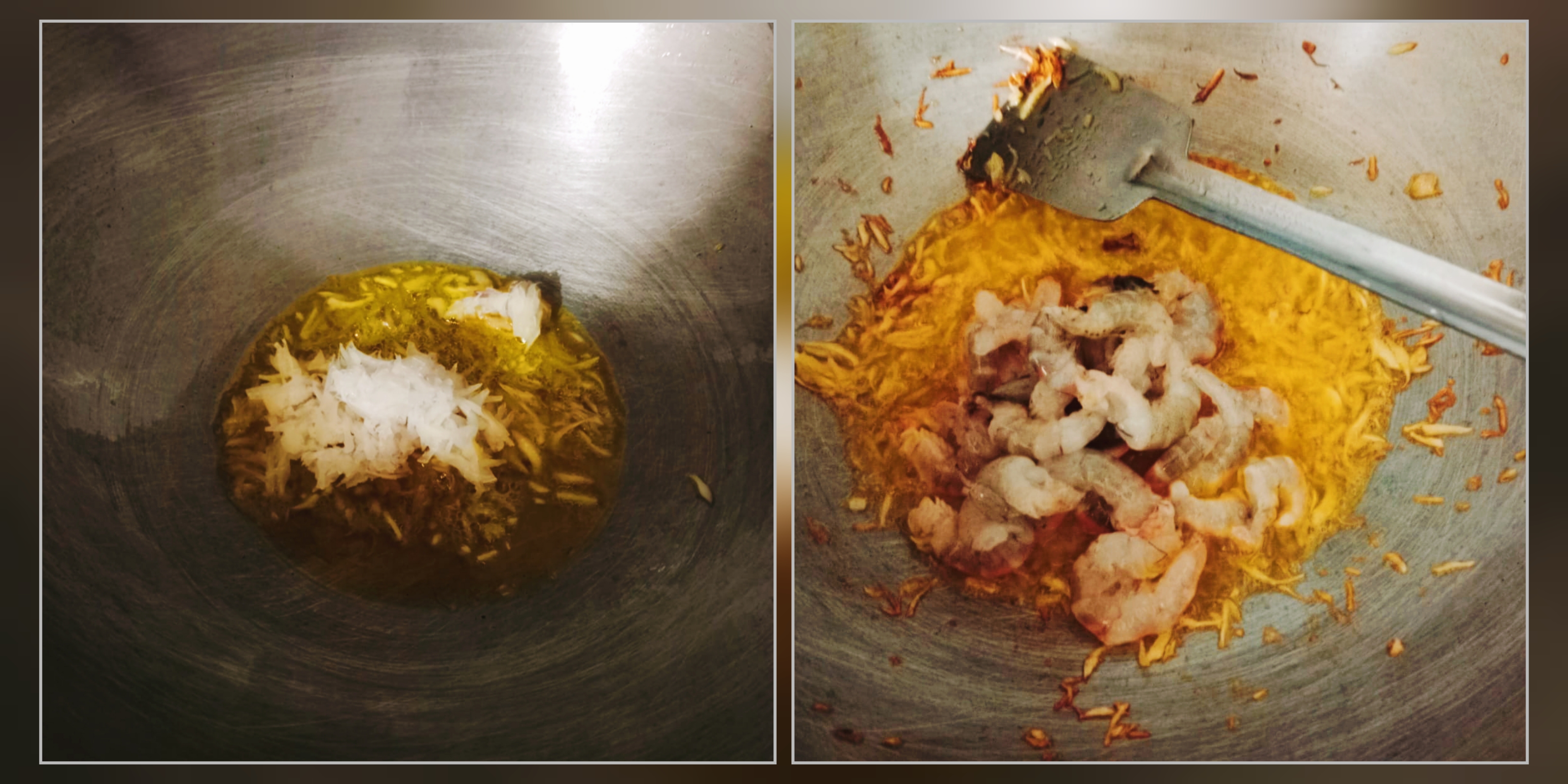 পেঁয়াজ হালকা ভাজা হয়ে গেলে, চিংড়ি মাছ গুলো দিয়ে ভালভাবে নেড়ে দিয়েছি।