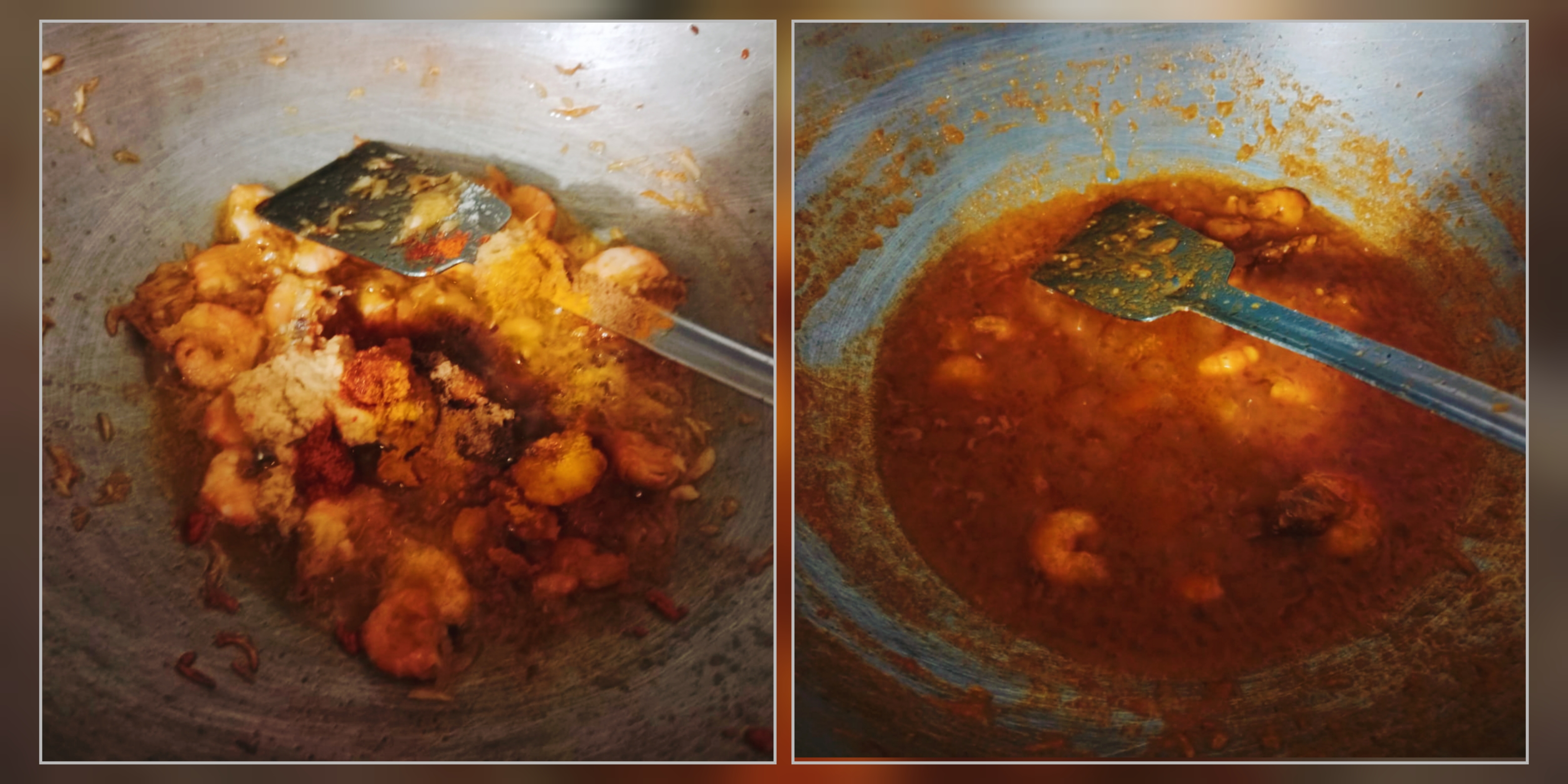 তারপর এক এক করে সব মসলাগুলো দিয়ে, অল্প একটু পানি দিয়ে মসলাগুলো কে ভালভাবে কষিয়ে নিয়েছি।