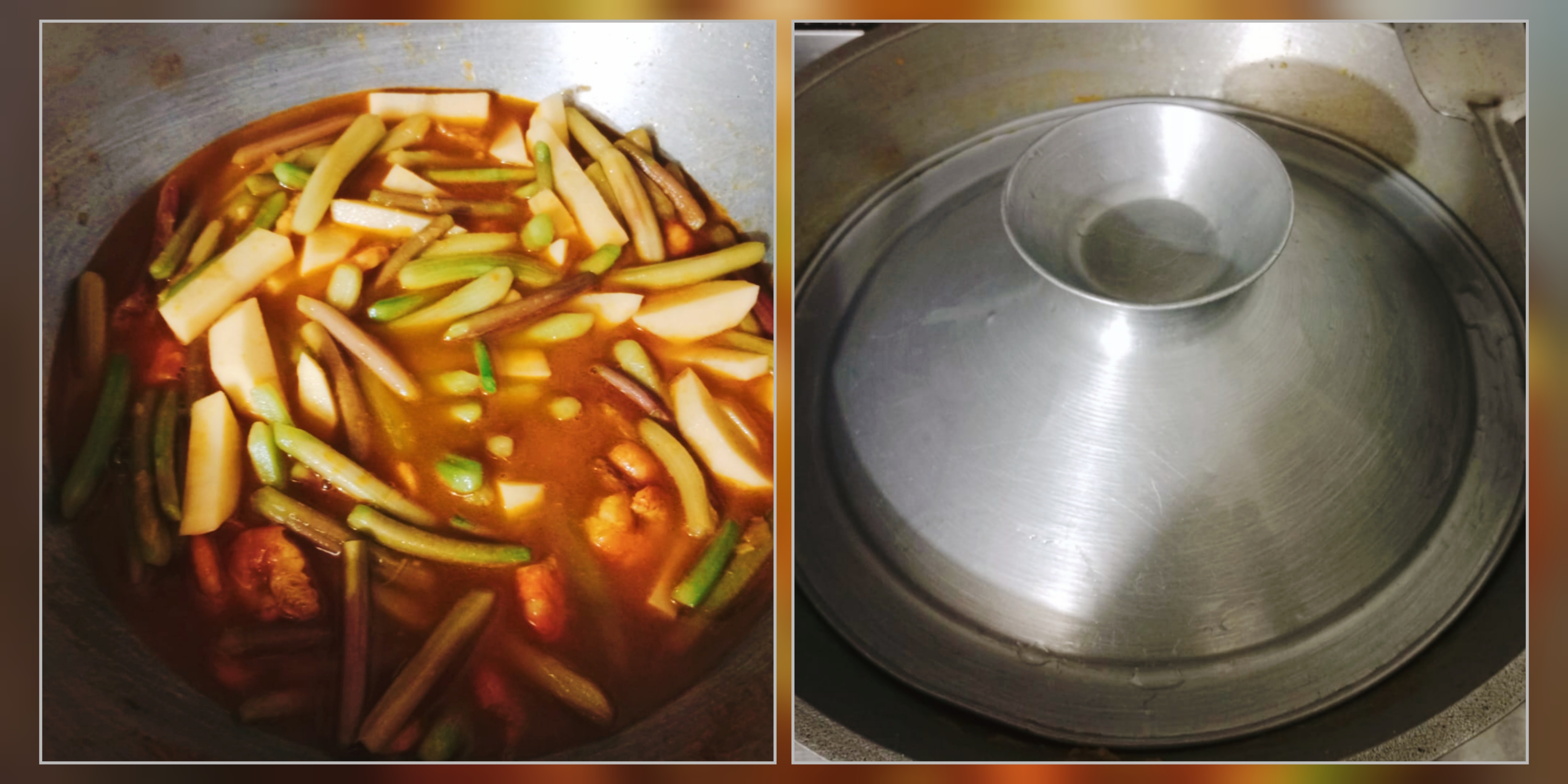 কিছুক্ষন কষানোর পর পর্যাপ্ত পরিমাণে পানি দিয়ে ঢেকে দিয়েছি, যেন মাছ, আলু এবং ডাটা ভাল করে সিদ্ধ হয়ে যায়।