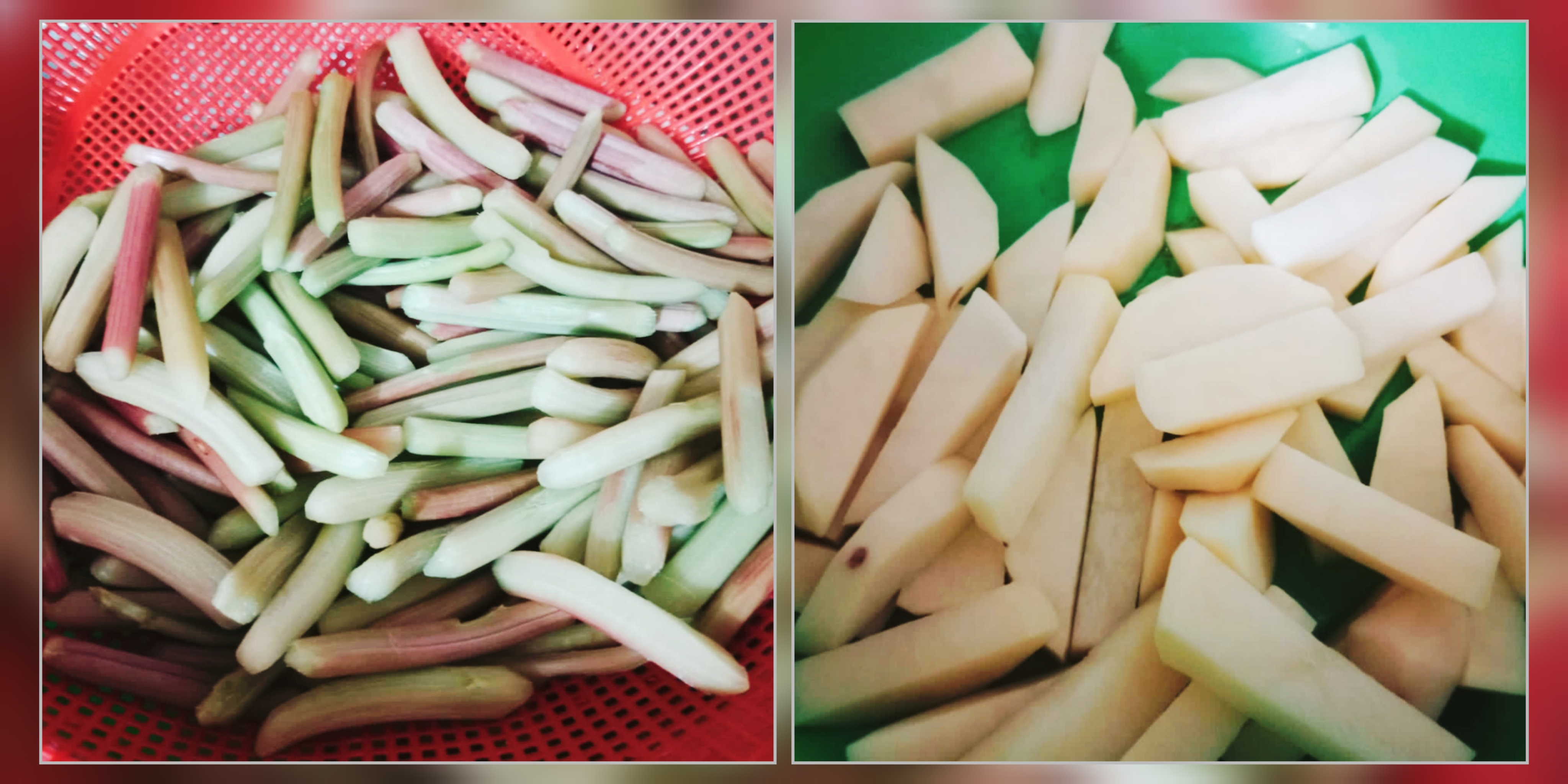 প্রথমে আলু ও ডাটা সাইজ মত কেটে, পরিস্কার করে ধুয়ে নিয়েছি।
