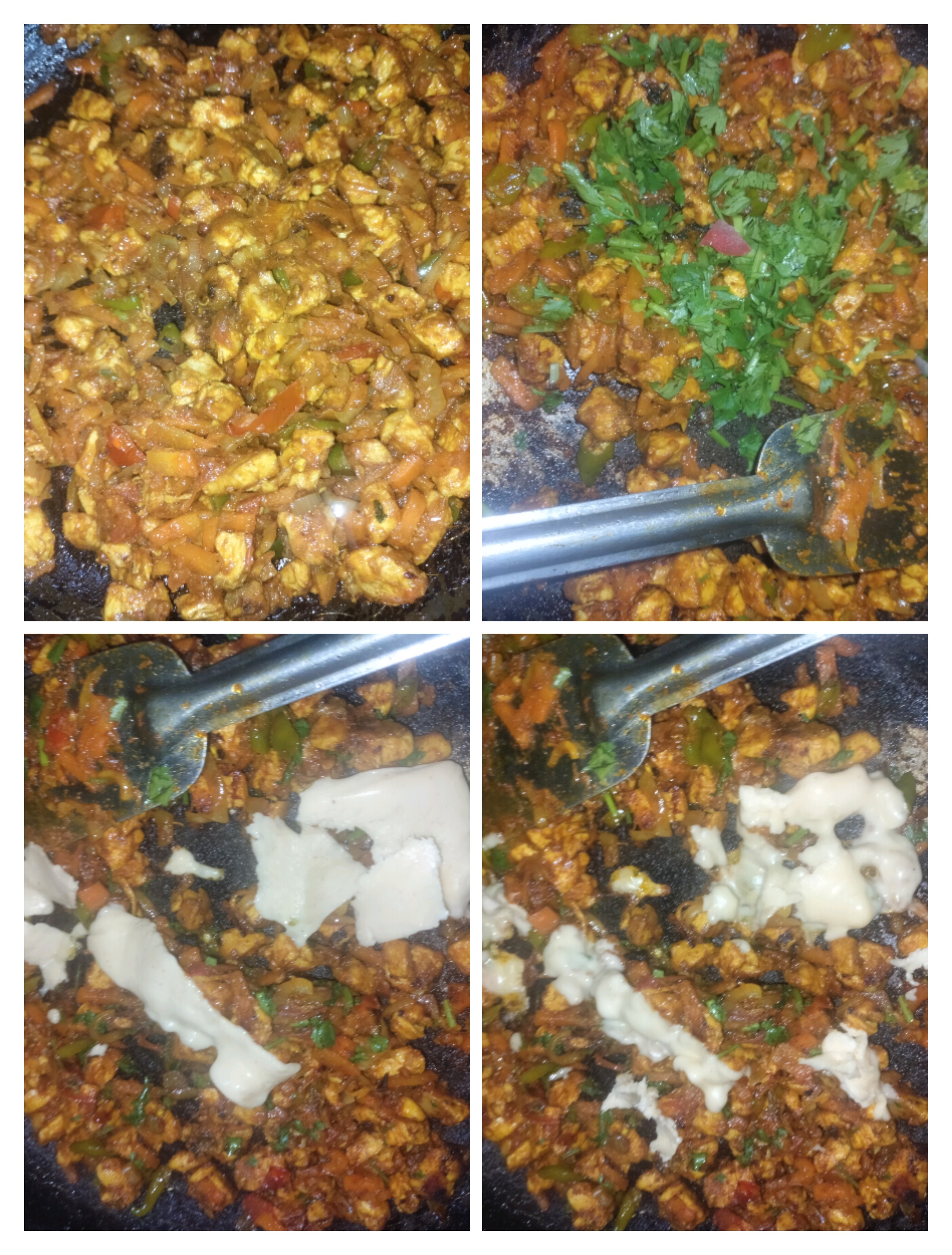 এরপর আমি এর মধ্যে চিজ এবং ধনিয়া পাতা কুচি দিয়ে দিলাম। এগুলো দিয়ে আরো কিছুক্ষণ রান্না করব।