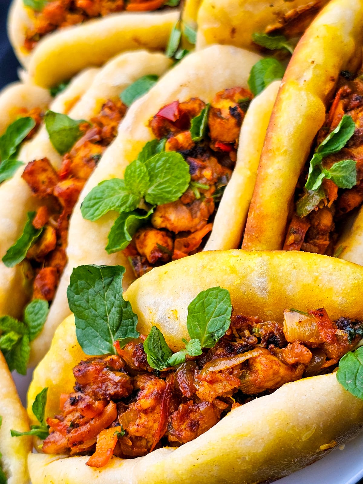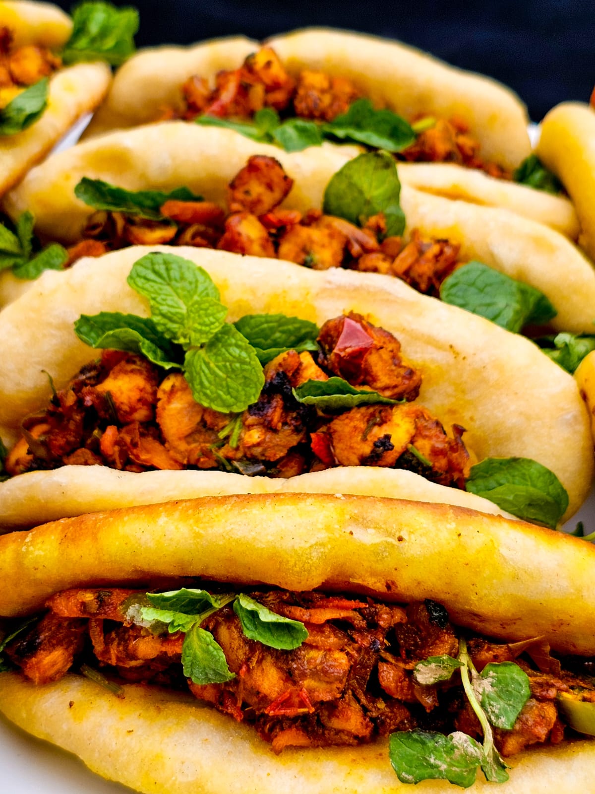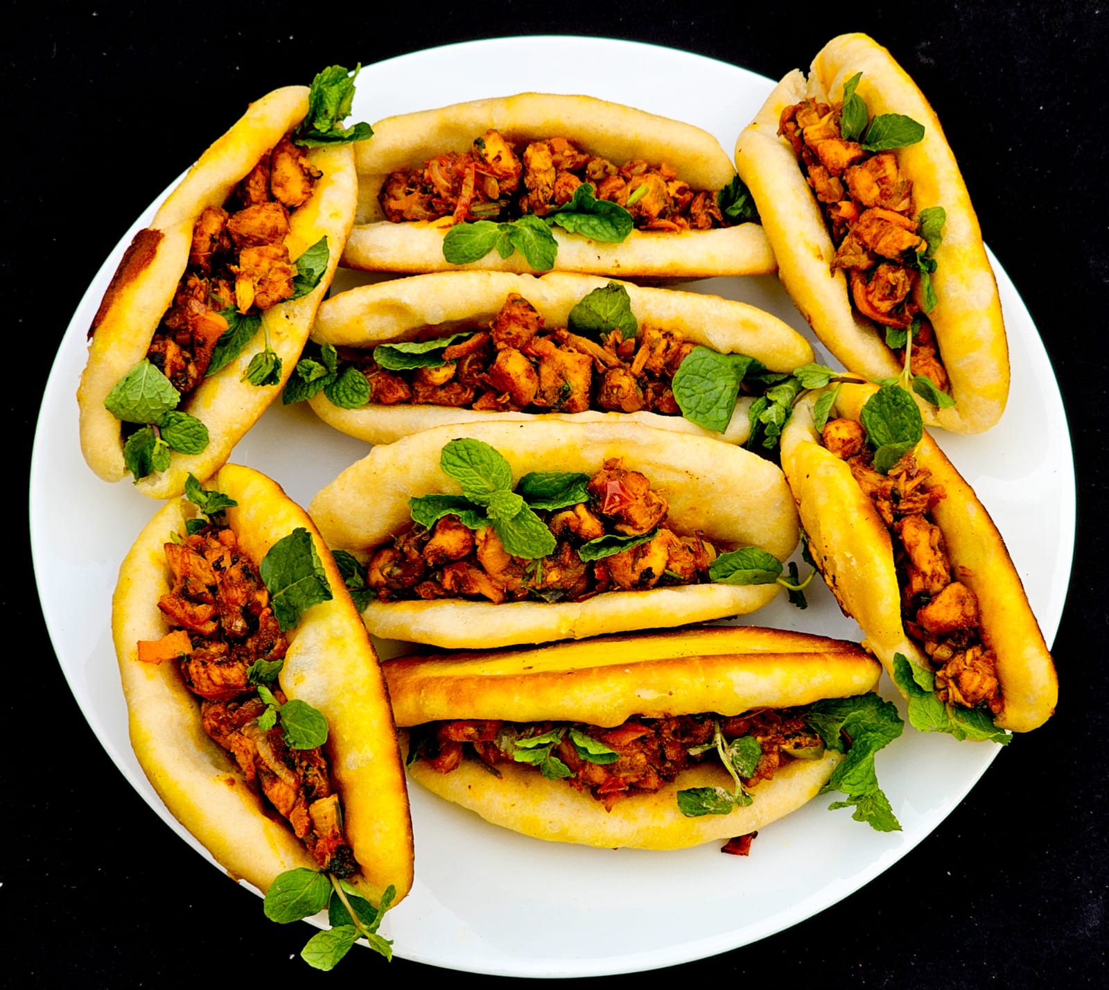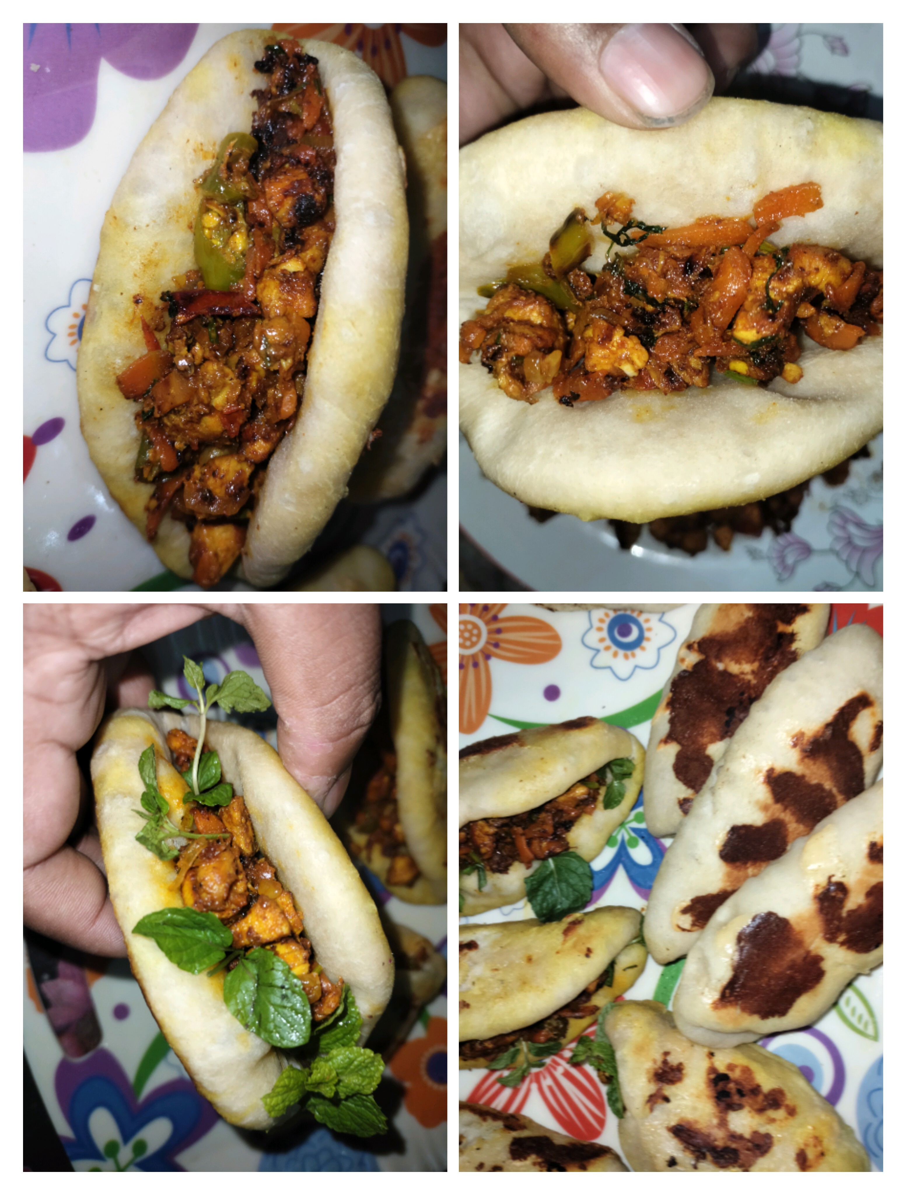 এরপর তৈরি করা বনের ভেতরে আগে থেকে তৈরি করা চিকেন দিয়ে দিলাম। এবং পুদিনা পাতা দিয়ে ডেকোরেশন করে নিলাম।