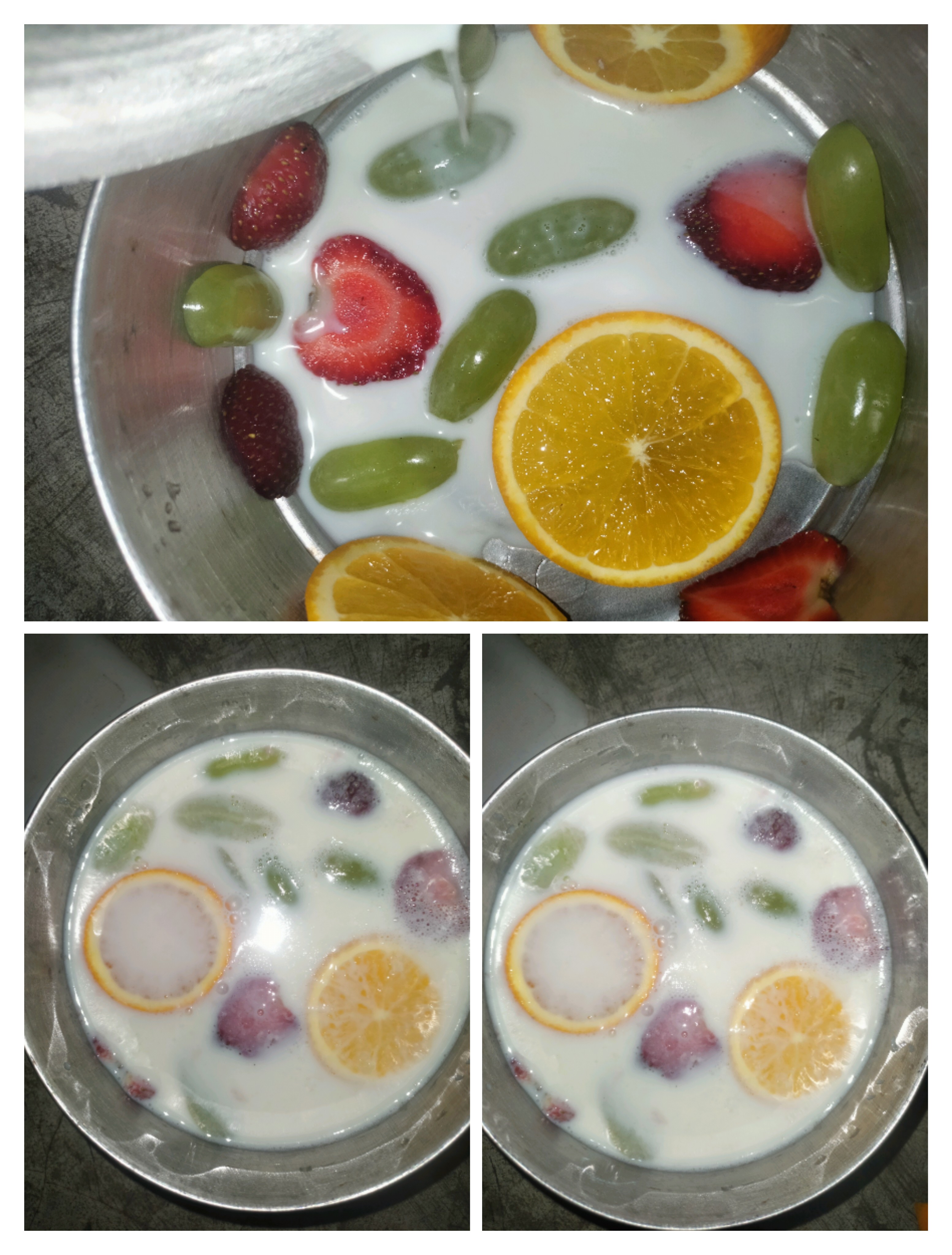 এরপর আমি একটি বাটিতে ফলগুলোকে খুব সুন্দর ভাবে চারপাশে বসিয়ে নিলাম।